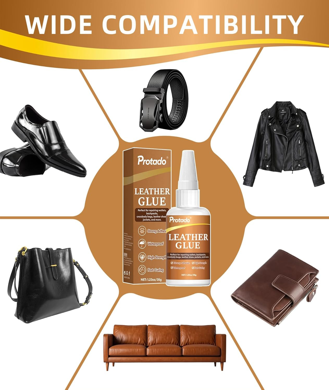 Leather Glue, 35G Heavy Duty Super Strong Clear Glue, Waterproof Flexible Adhesi