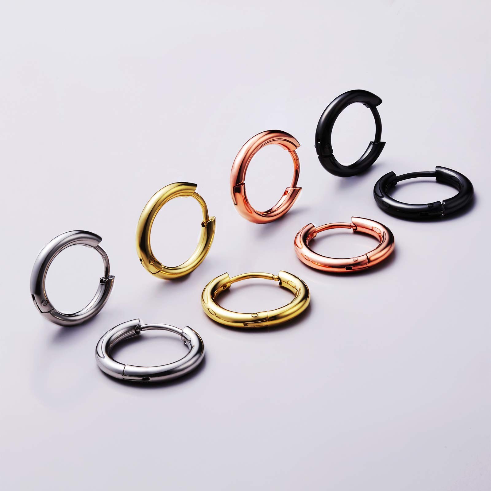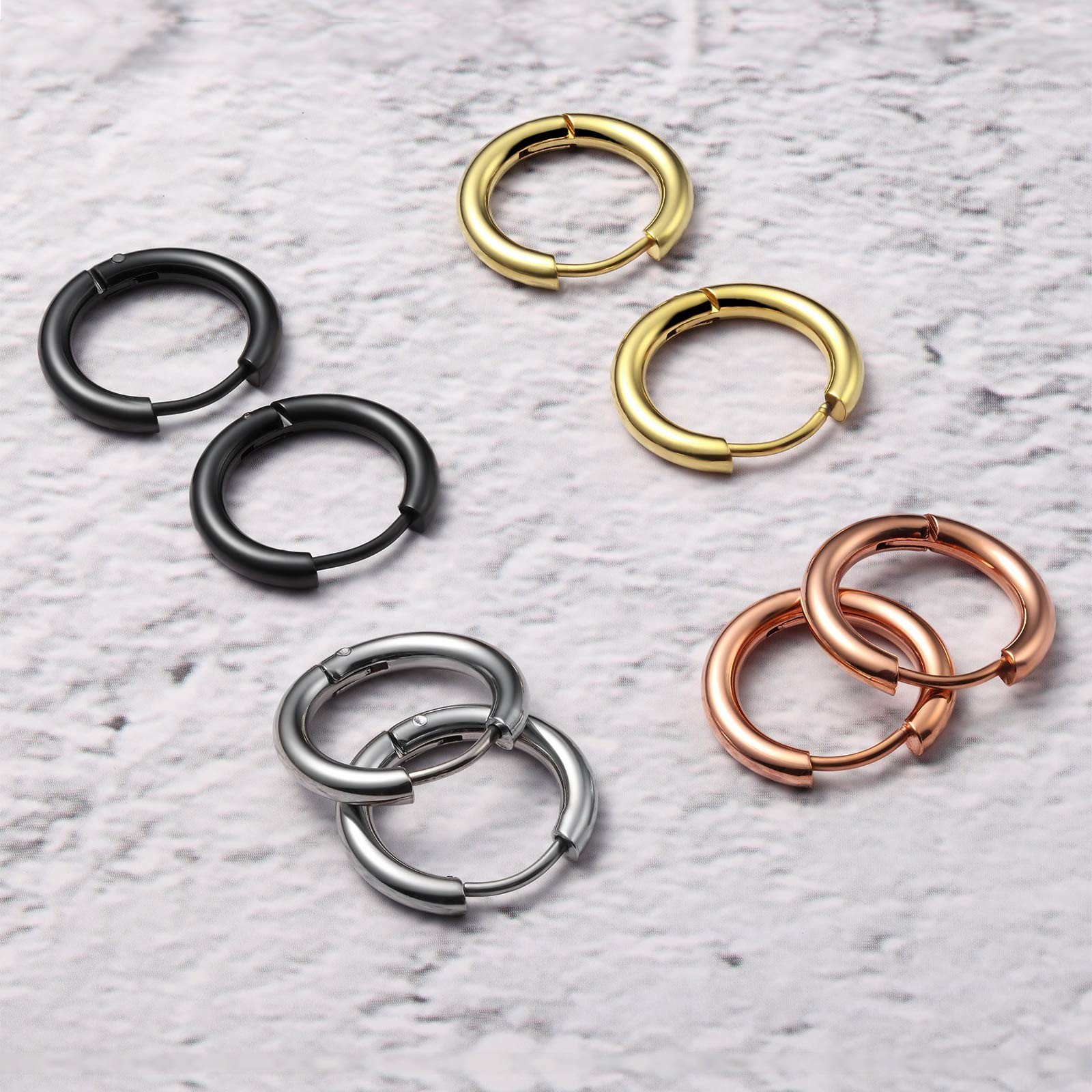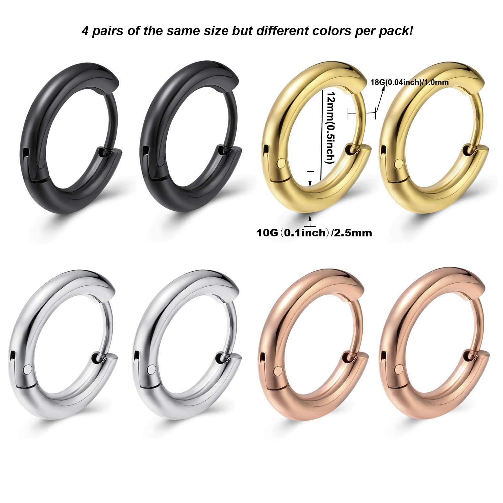 Surgical Stainless Steel Small Hoop Earrings 8mm/10mm/12mm Gold Black Hoop Ca...