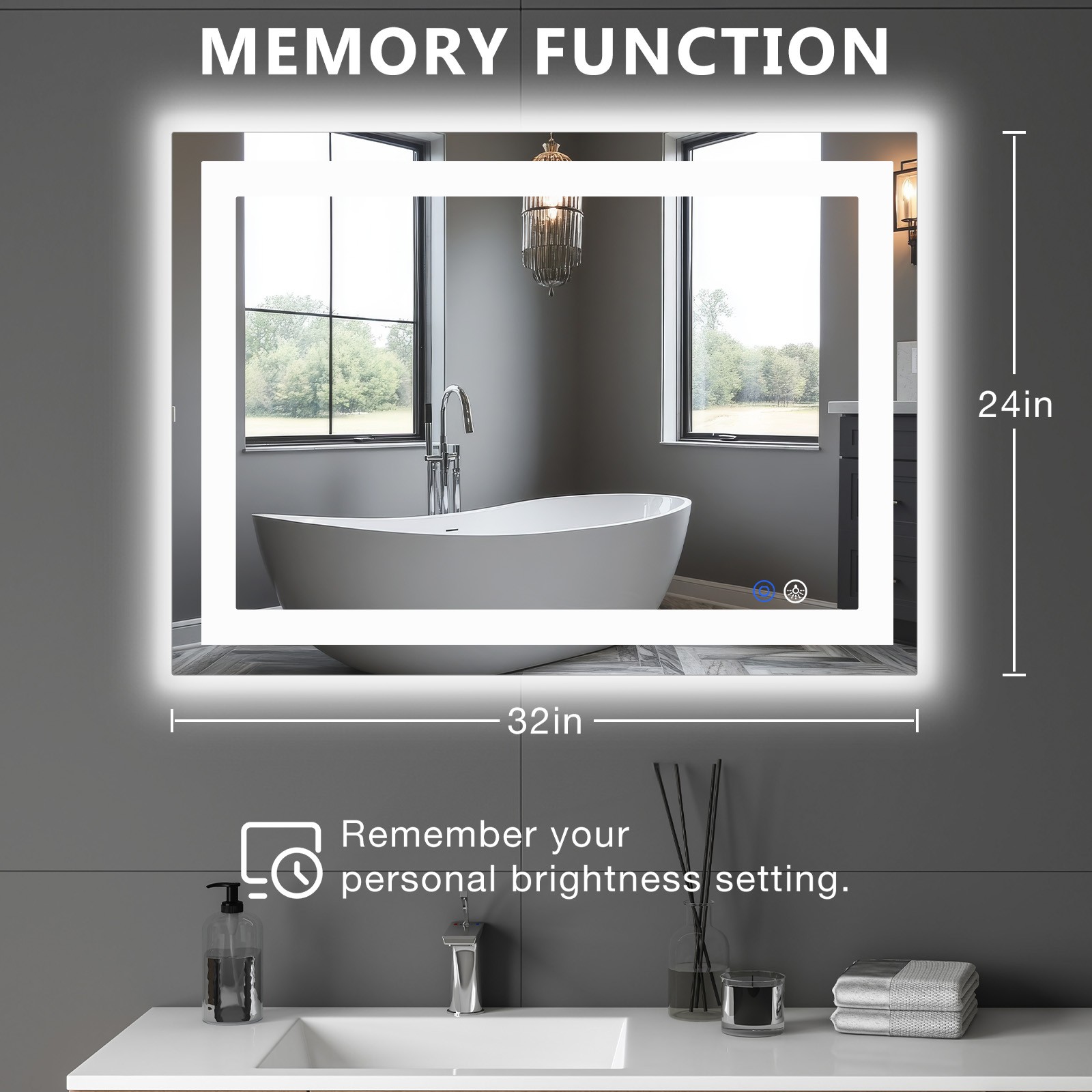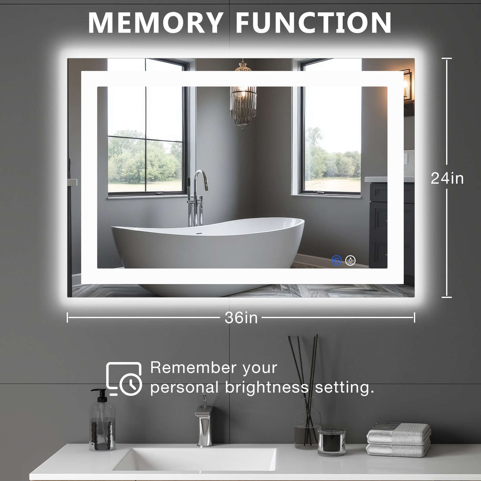 LED Light Bathroom Wall Vanity Mirror with Anti-Fog Dimmable Rectangle Mirrors