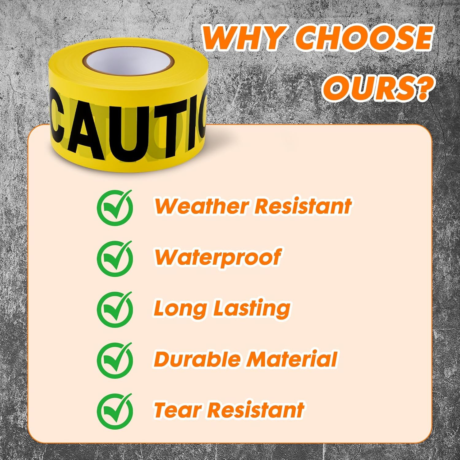 Caution Warning Tape 3 Inch X 1000 Feet Bright Safety Hazard Tape with Bol