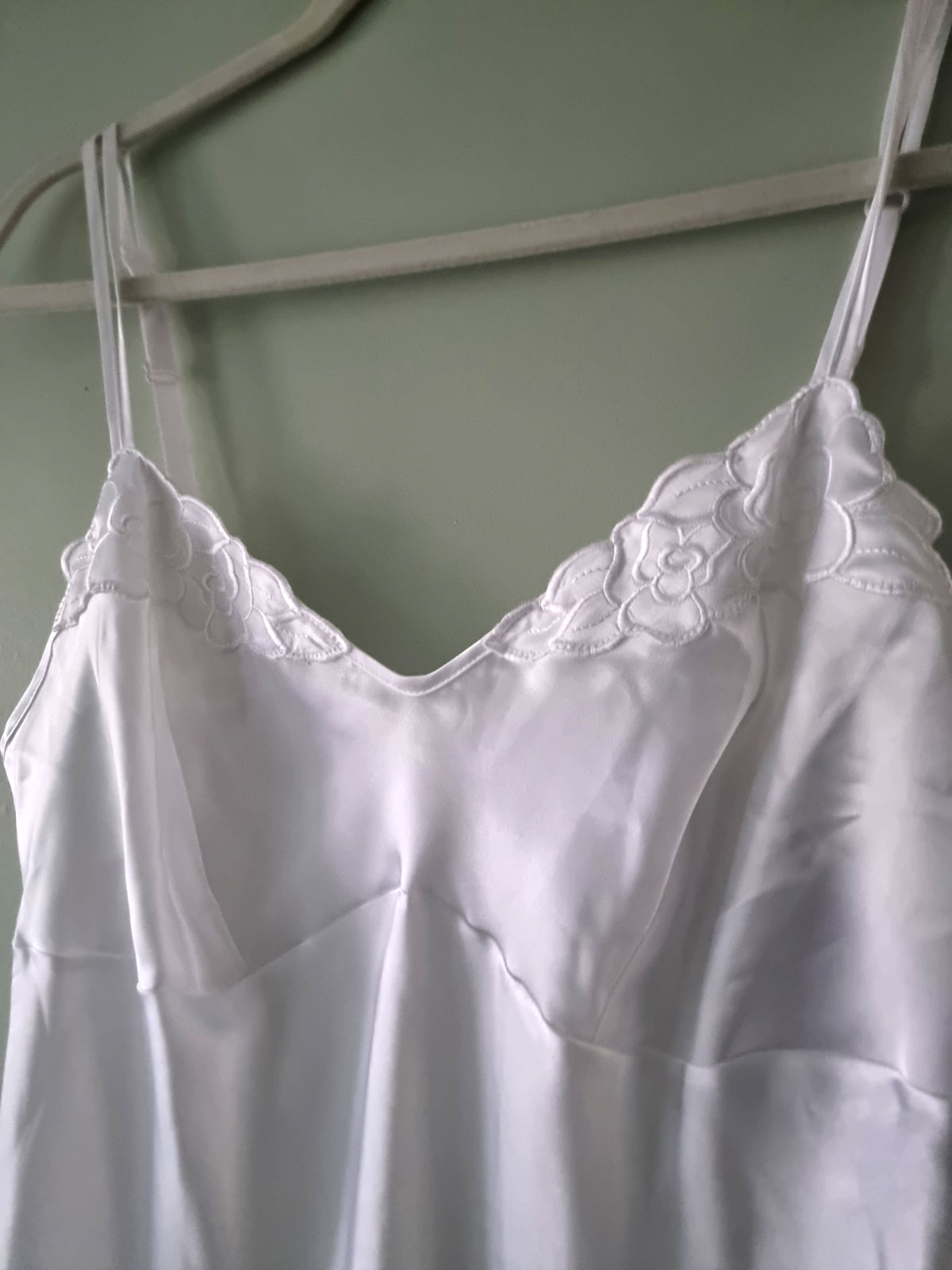 как выглядит NWT M S 14 White Satin Glossy Slippery Cling Resist Full Slip Petticoat фото