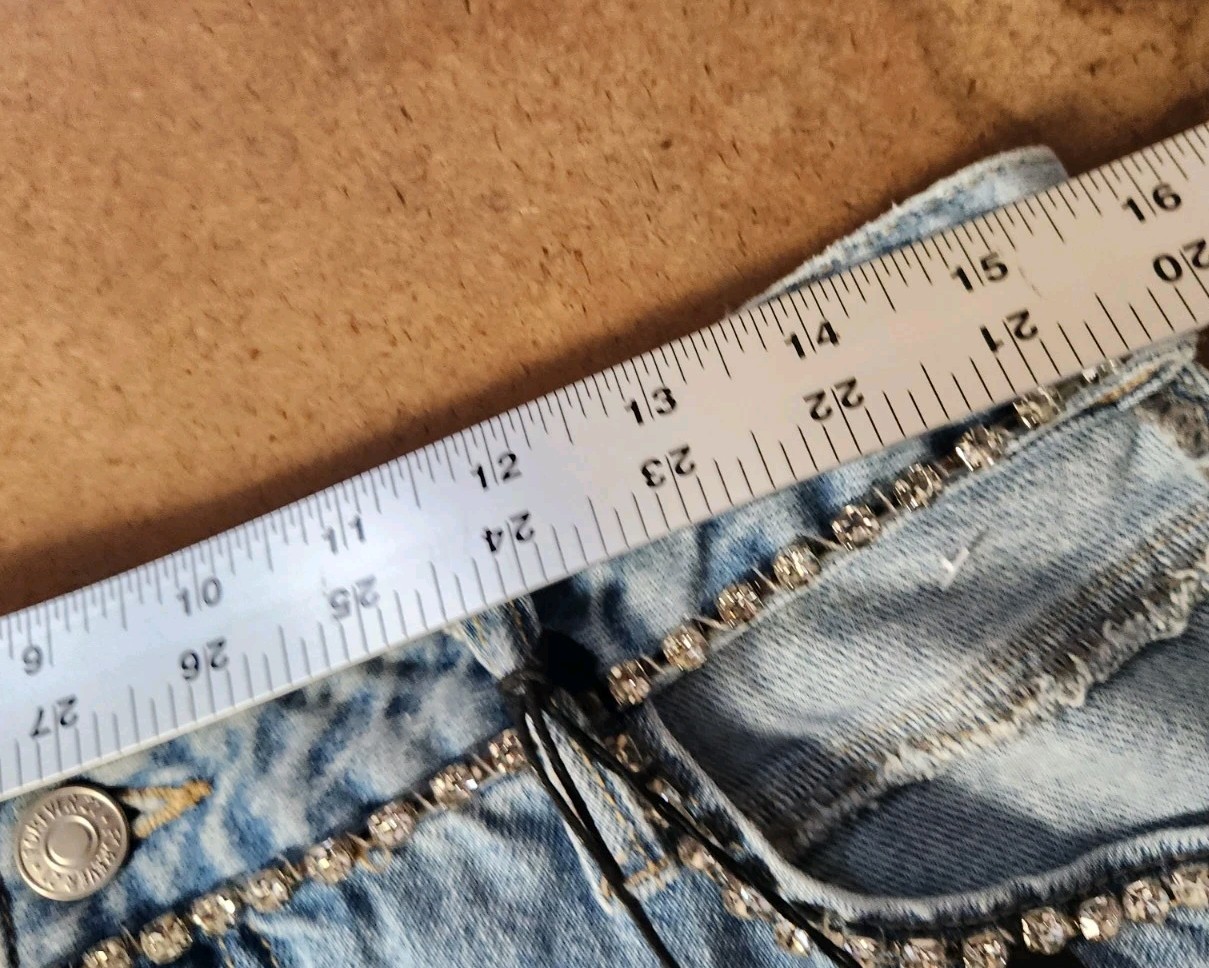 как выглядит Wide Leg 90s Fit Denim Jeans Size 31 Blue Light Wash Y2K Embellishments фото