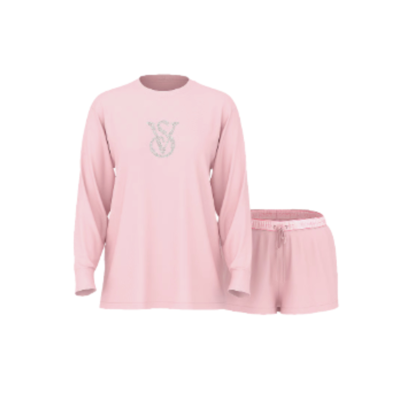 Victoria's Secret Women's 100 Cotton Shine Long Sleeve Short Pink Pajama Set L