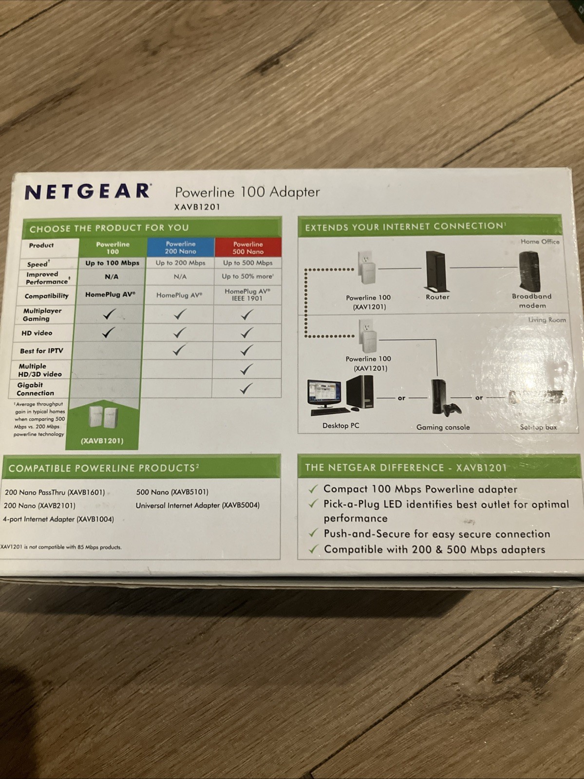 Netgear Powerline Model XAV1201 Pair Ethernet Adapters New Open Box