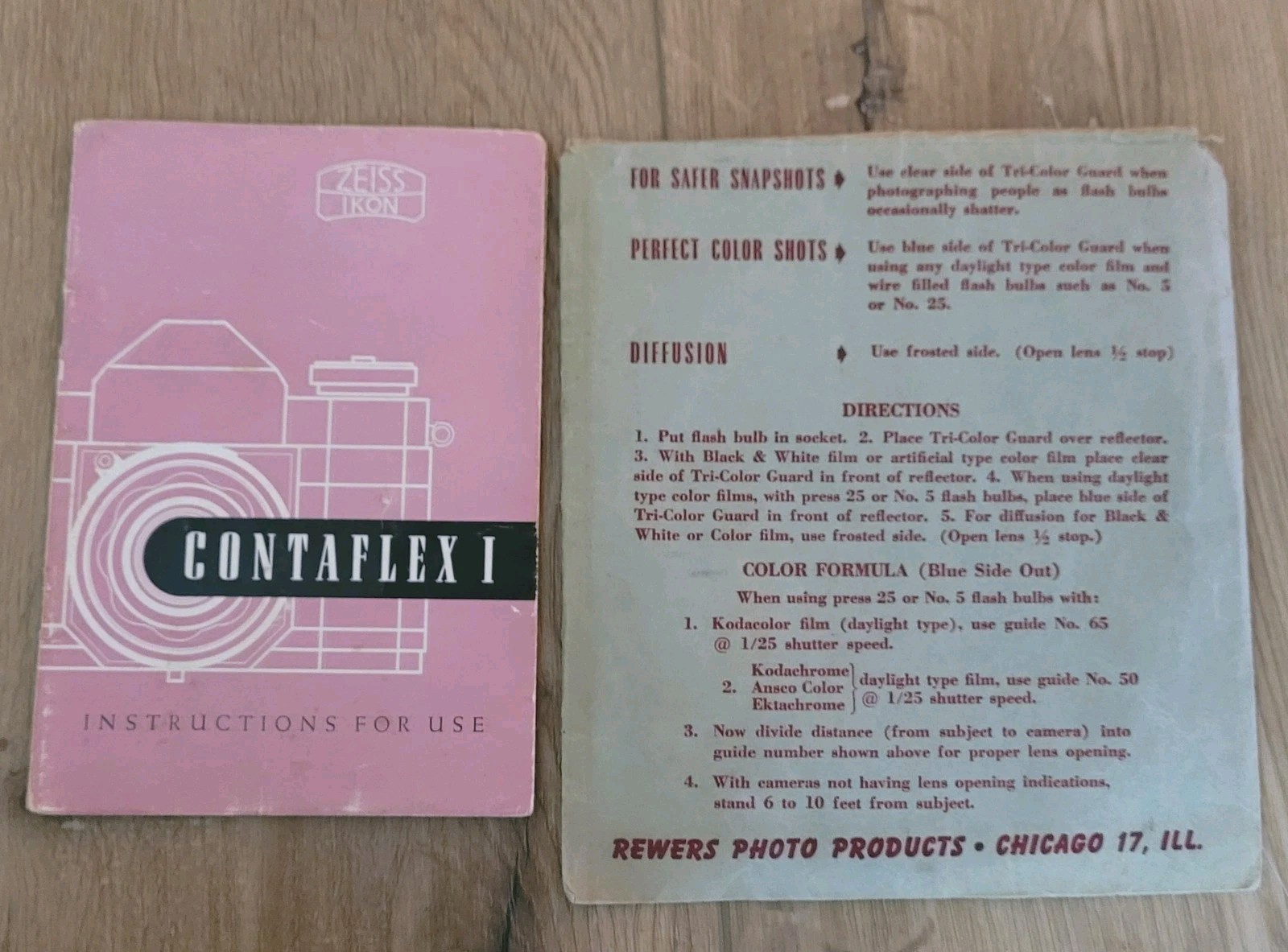 Vtg Zeiss Ikon Contaflex SLR Camera w/ Case, Flash, Light Meter Manuals Untested