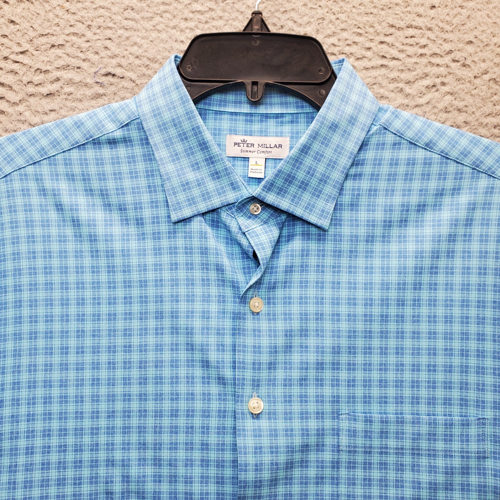 как выглядит Peter Millar Shirt Mens Large Multi Check Summer Comfort Long Sleeve Button Up фото