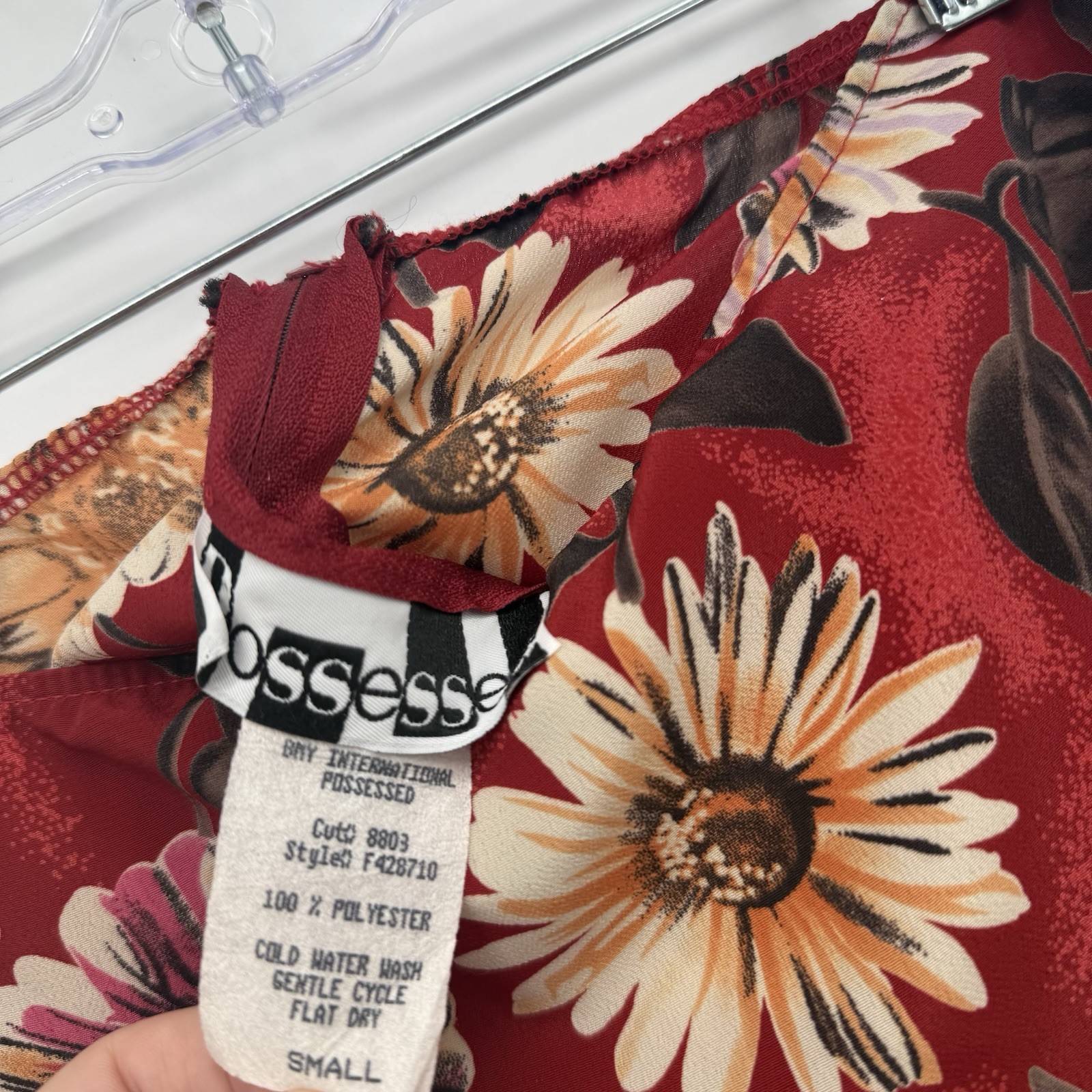Possessed Vintage 90s Red Multicolor Floral Midi Skirt Size Small