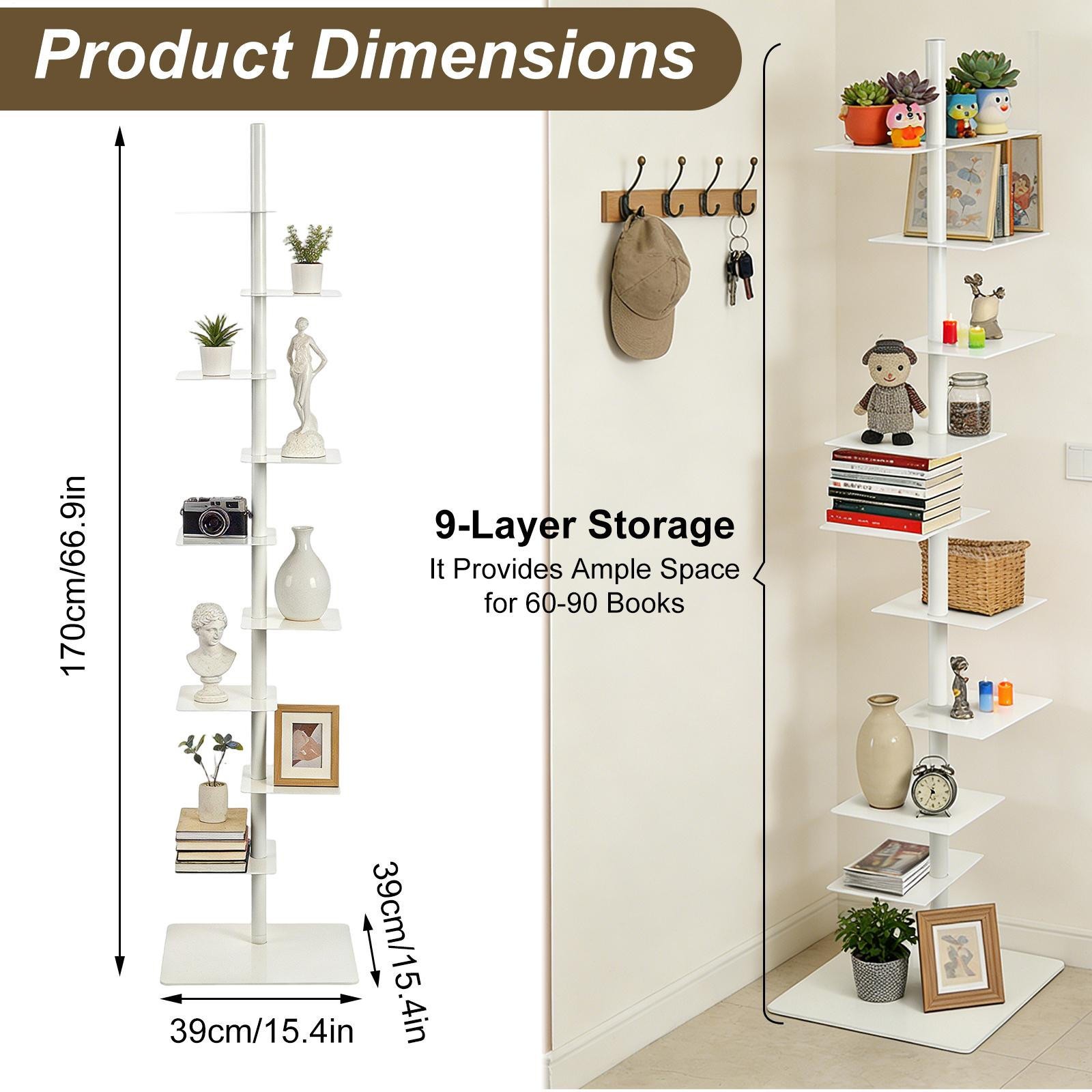 Spine Bookshelf, Vertical Spine Book Tower 9-Tier Metal Bookcase Book Organizer