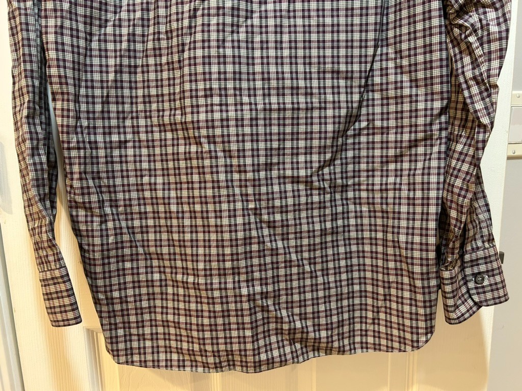 как выглядит Brioni size large mens button up down cotton plaid collared shirt made in Italy фото