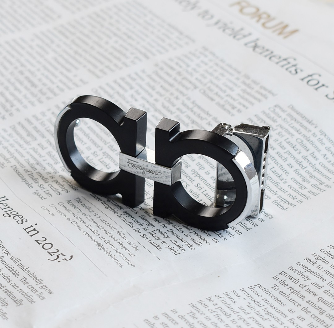 Black with Silver Men's Ferragamo Belt Buckle for 34-35mm leather strap