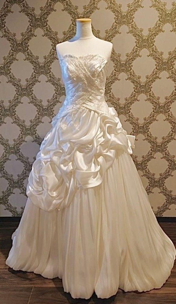 как выглядит Strapless Vintage Wedding Dresses Satin Princess Ruffled Full Length Bridal Gown фото