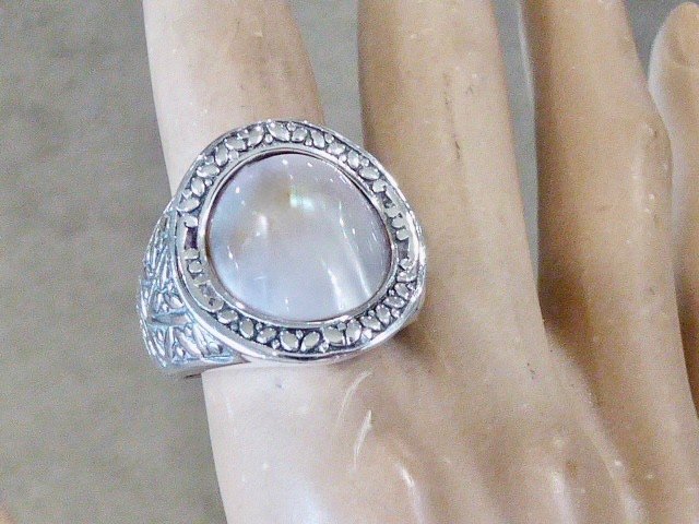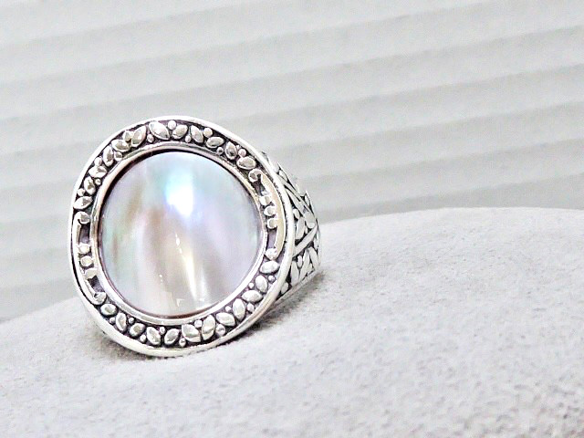 как выглядит NEW SIGNED A 925 STERLING SILVER MOTHER OF PEARL RING SIZE 9 RING 7/8 " TOP фото