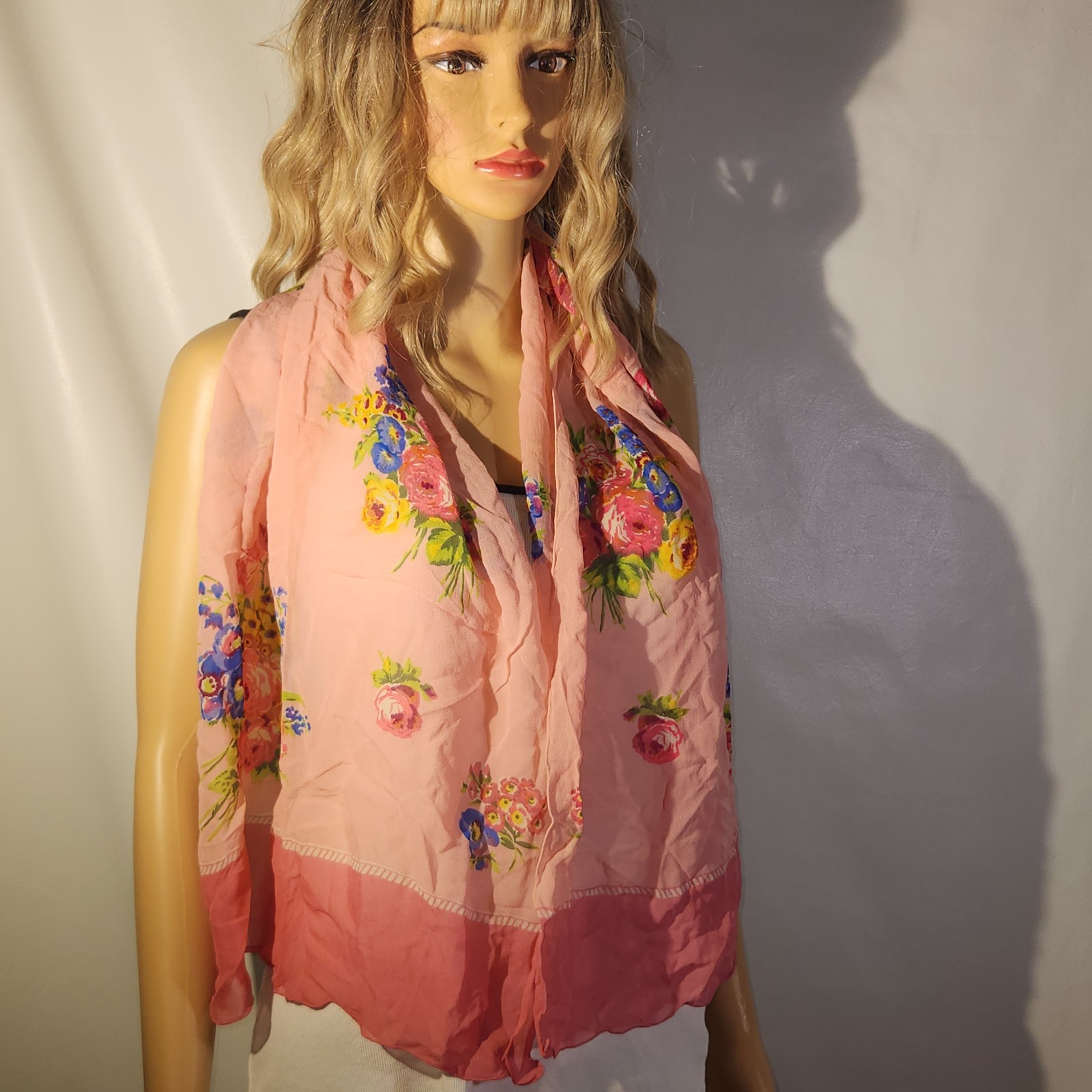 как выглядит Vintage Pink floral Poppies 100 Silk Scarf 18x50 Wrap Hand Rolled Flowers фото