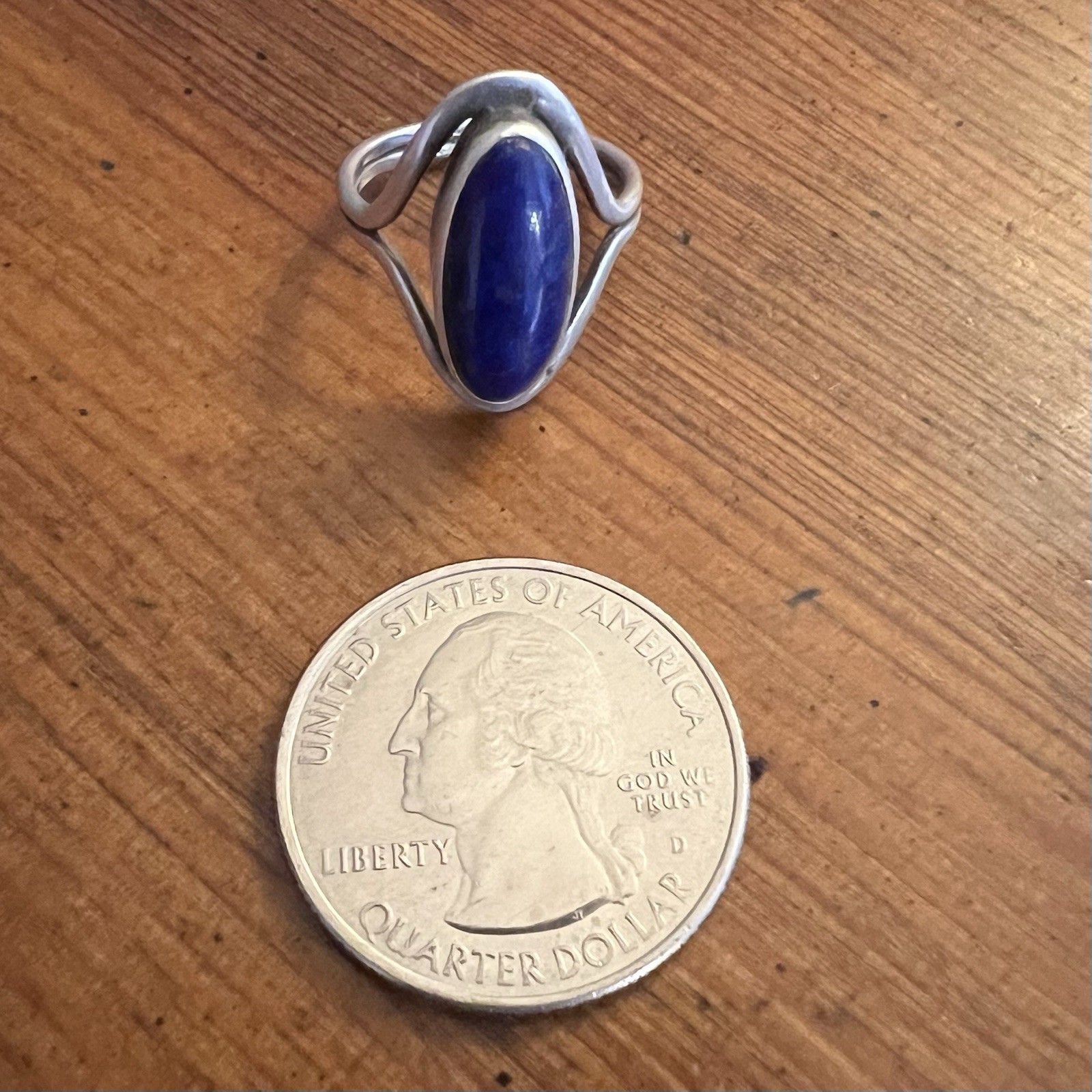 Vintage Artisan Made Lapis Lazuli Sterling Silver Ring Size 6.125
