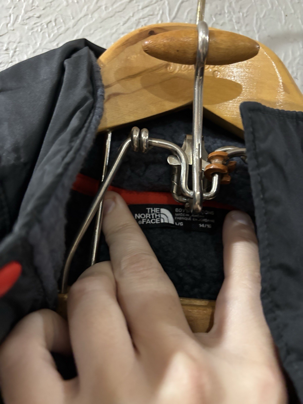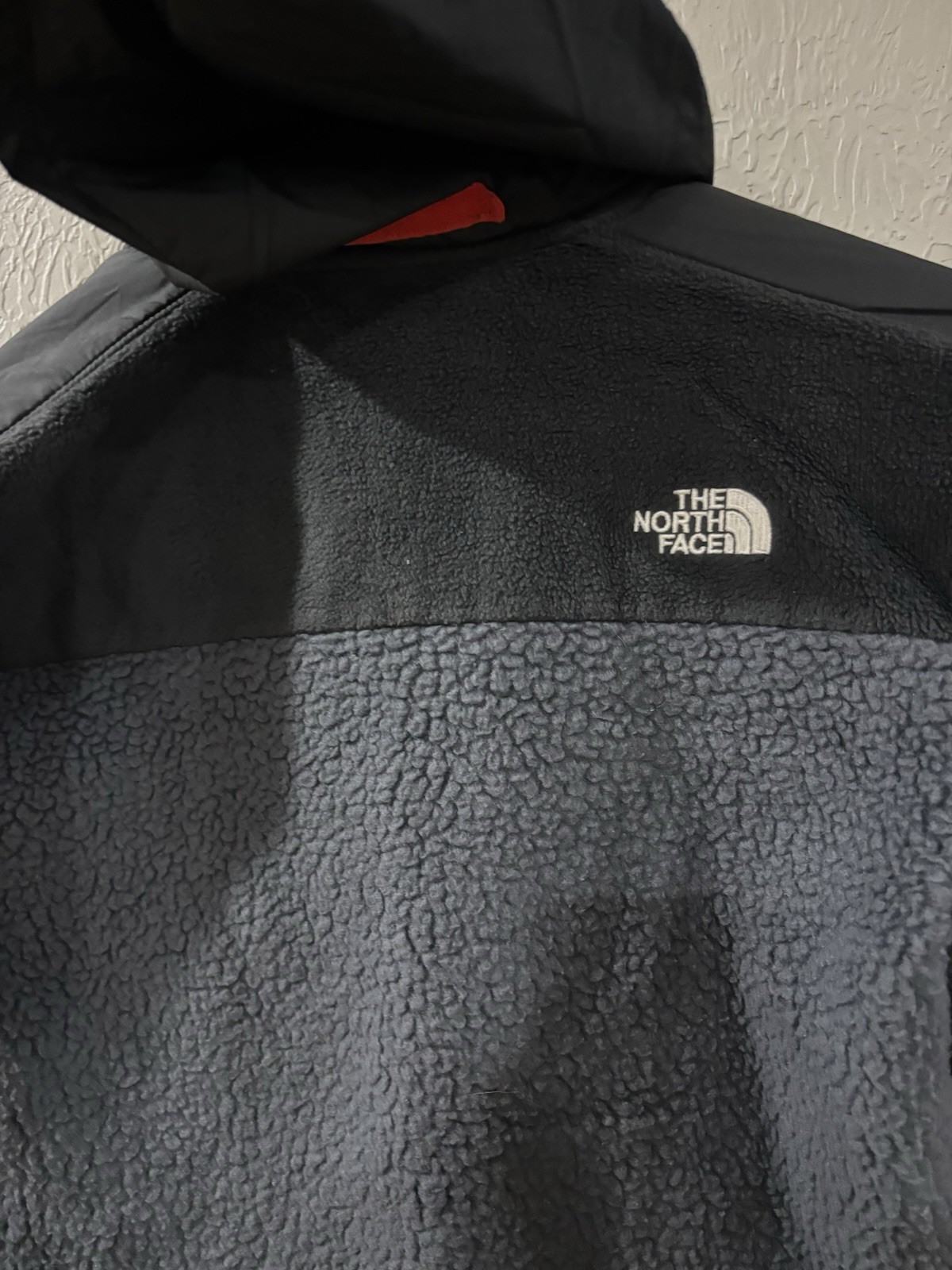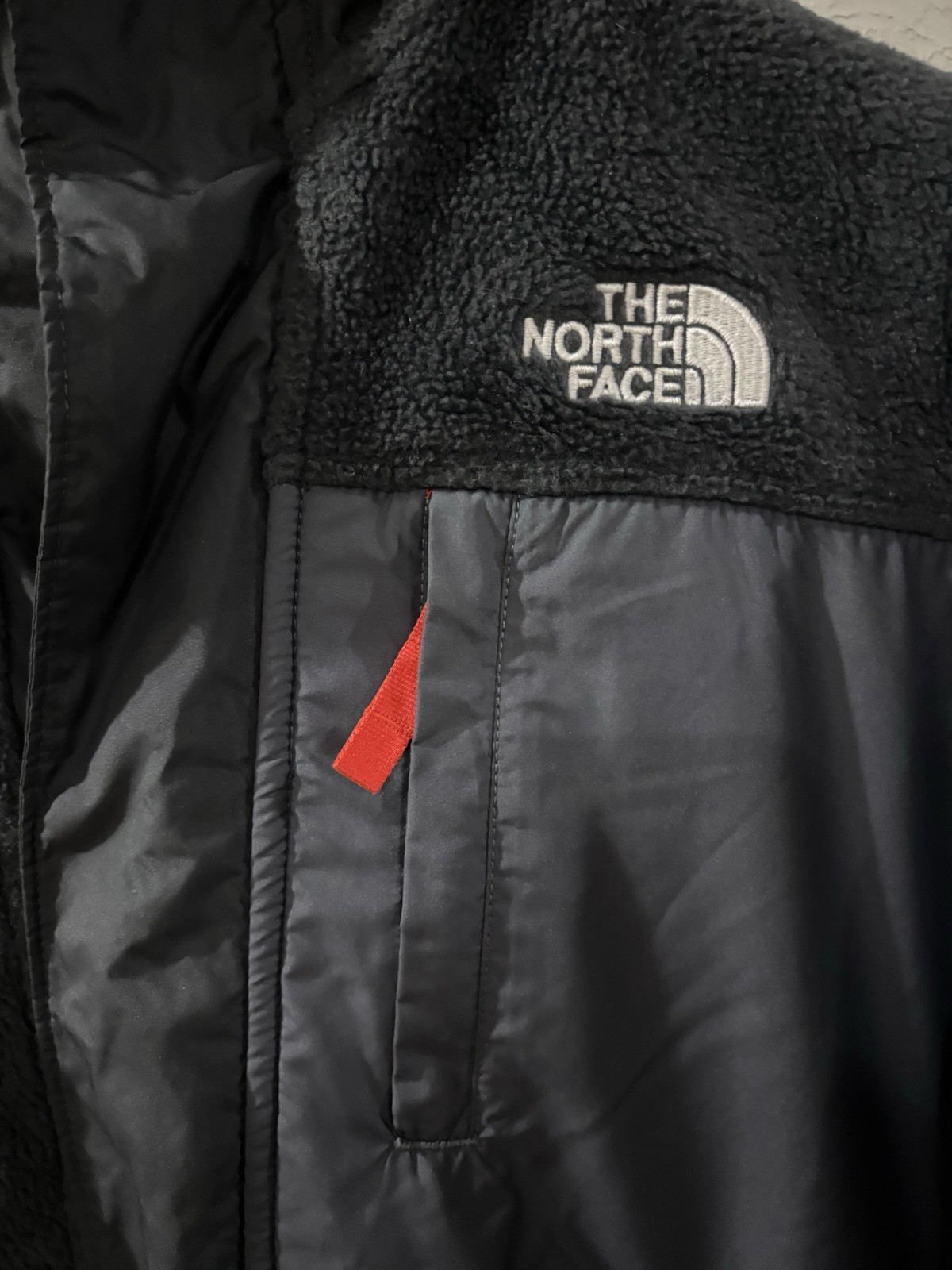 как выглядит The North Face Boys Forrest Mixed-Media Full Snap Button Up Jacket Black/Red YL фото