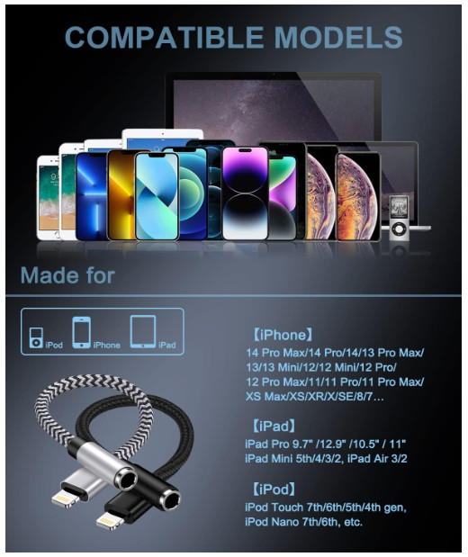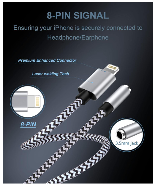 как выглядит 2Pack IPhone Headphone Adapter, Apple MFi Certified Lightning To 3.5mm Audio 8 фото