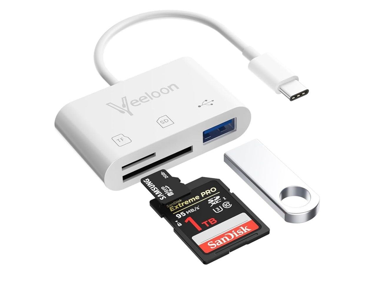как выглядит Veeloon 3-in-1 USB-C SD/TF Card Reader OTG Adapter, 5Gbps High-Speed,Plug Play фото