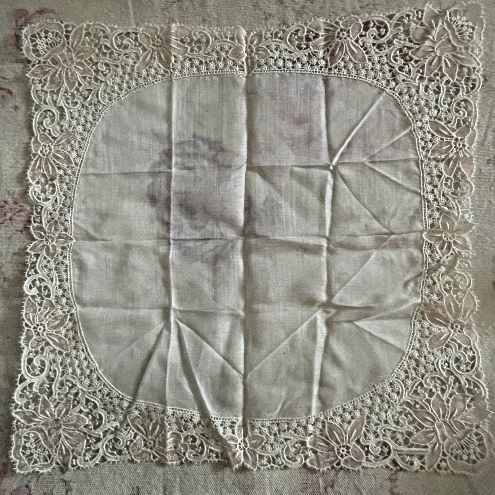 как выглядит Vintage Pink White Lace Handkerchief Switzerland Bride Wedding Keepsake фото