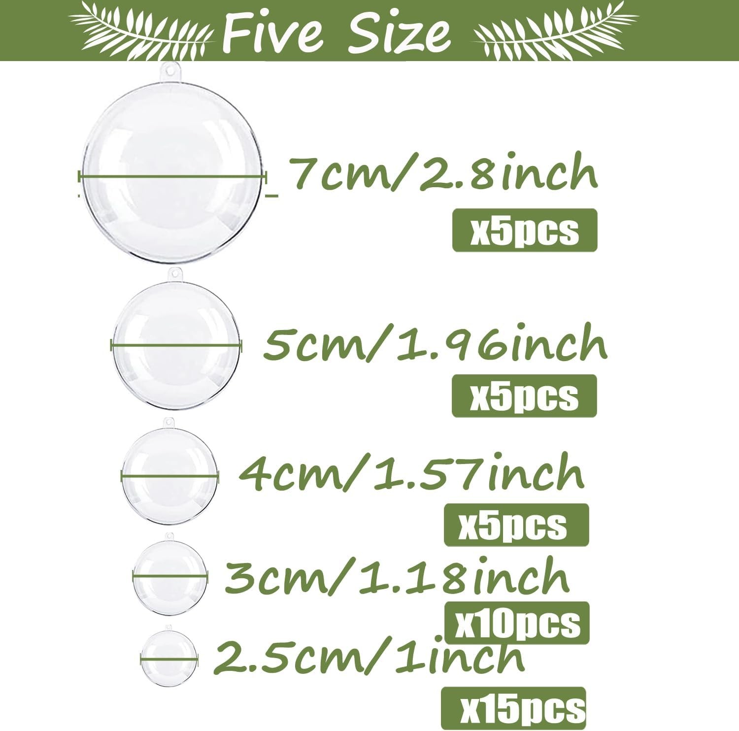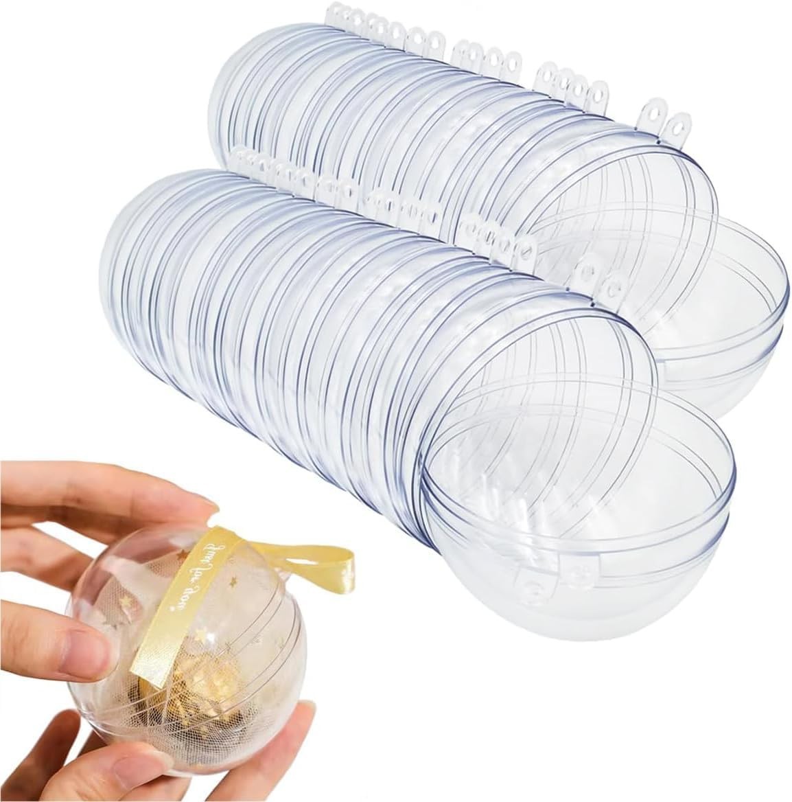 40PCS Clear Plastic Ornaments for Crafts Four Size Fillable Christmas