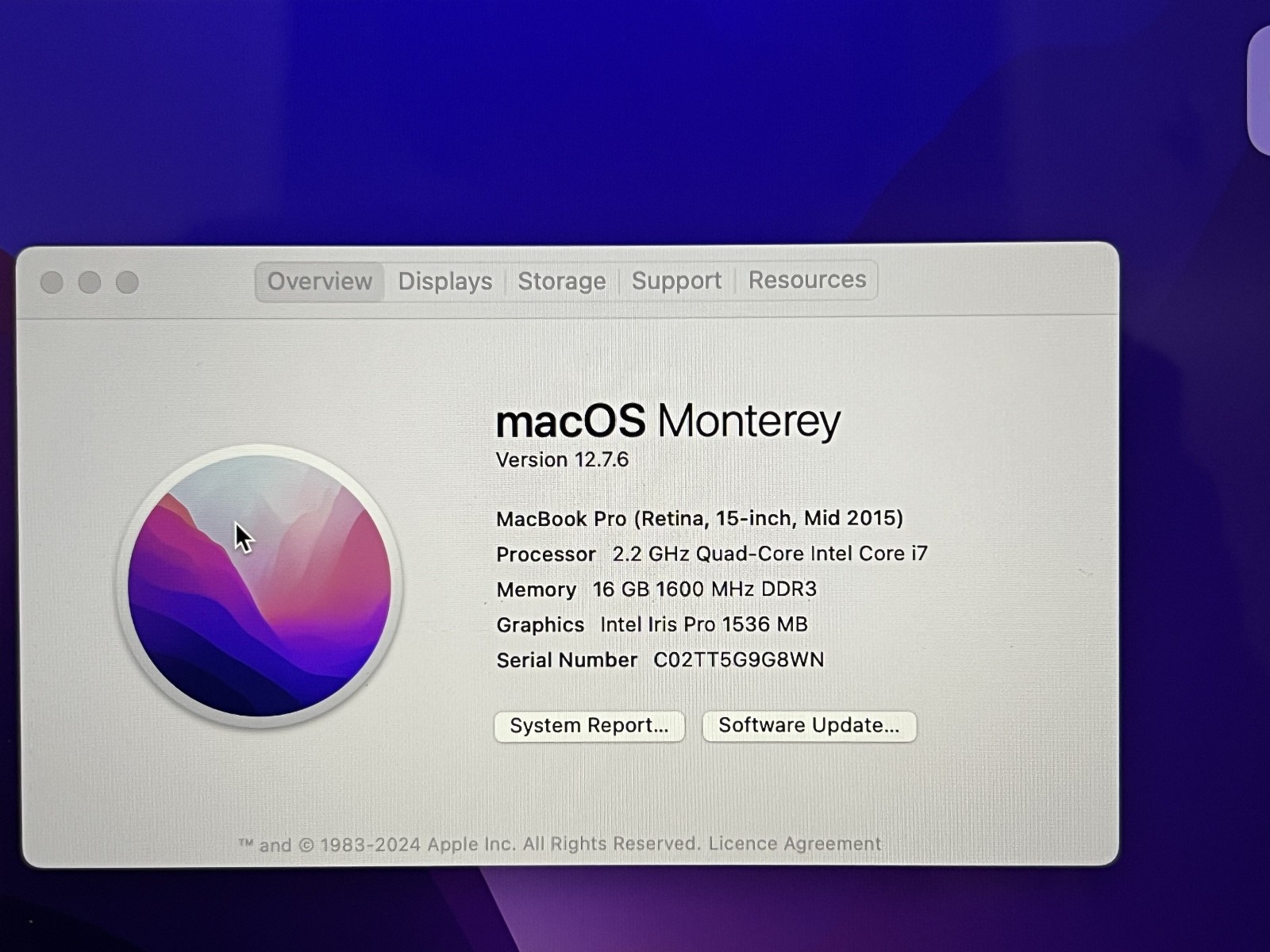 Операционная система: macOS 12.0, Monterey