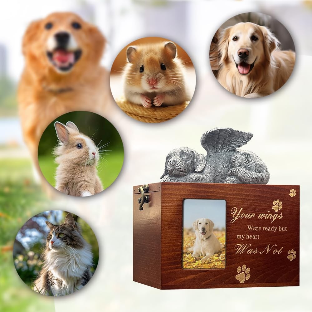Dog Urn for Ashes with Picture Solid Wood Funeral Cremation Wooden Keepsake w...