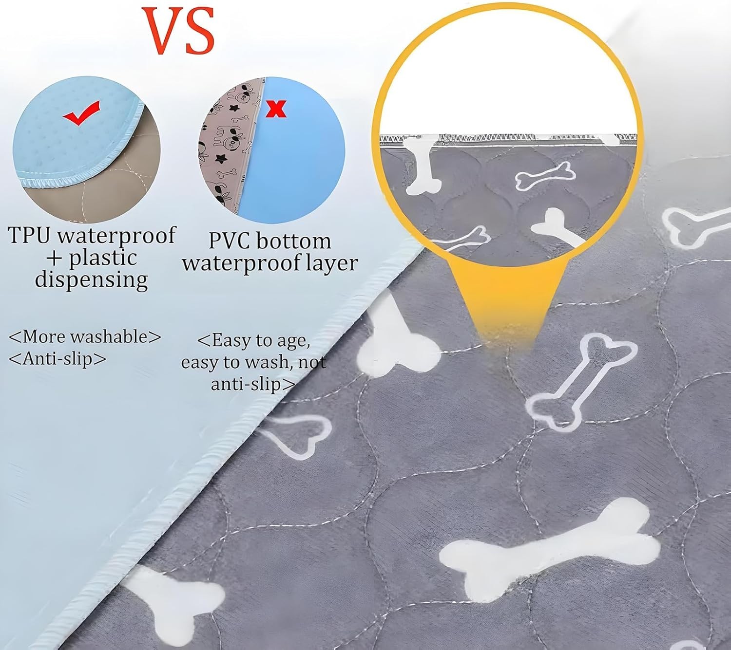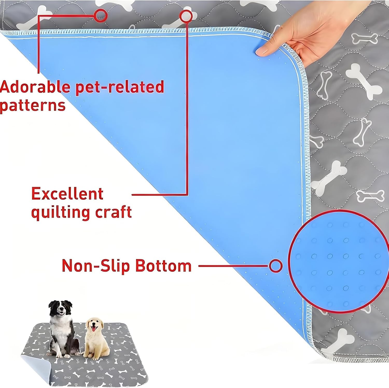 Материал: Soft plush surface + TPU waterproof layer + anti-slip bottom