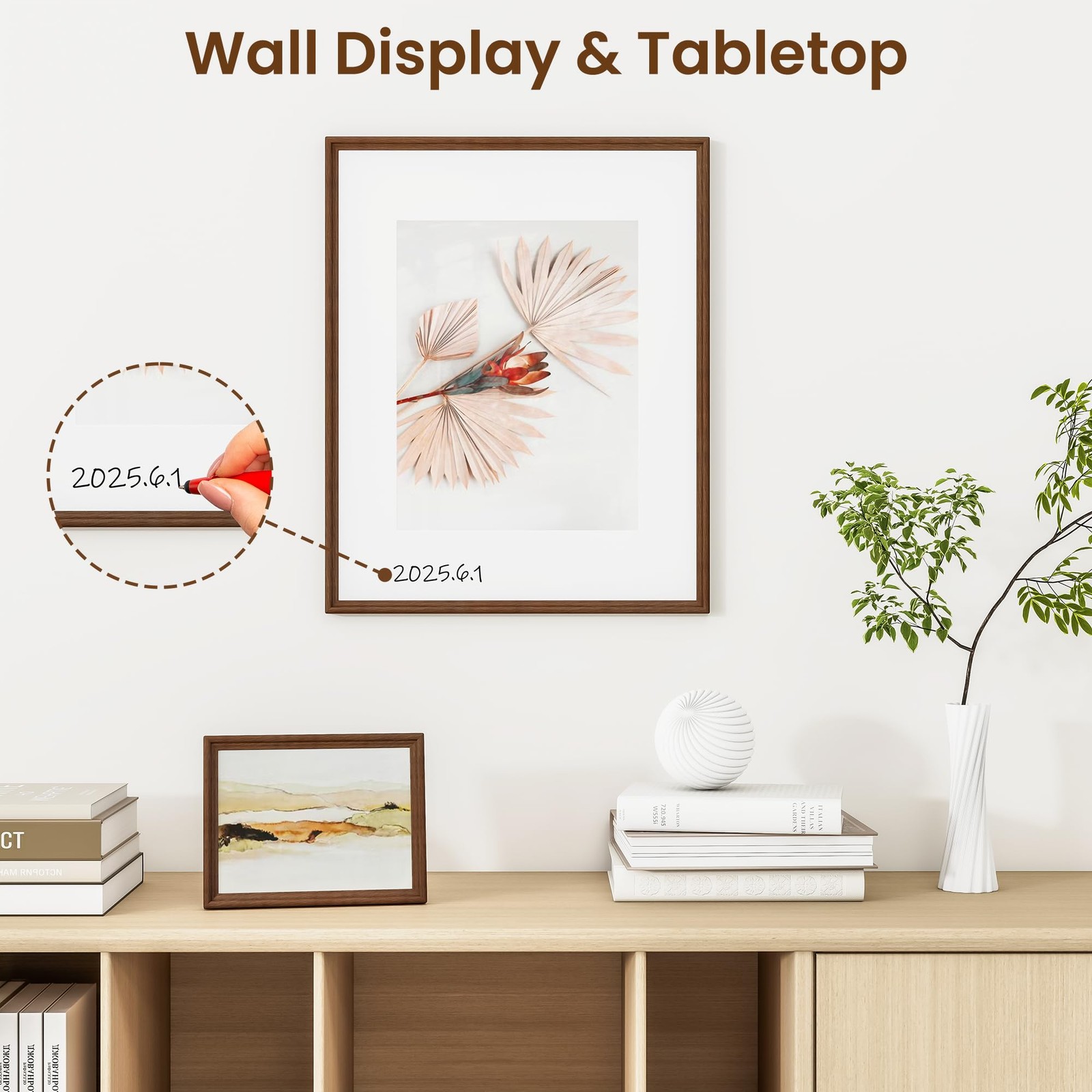 как выглядит 8x10 Natural Solid Oak Wood Picture Frame with 5x7 Mat, Premium Rustic Wooden... фото
