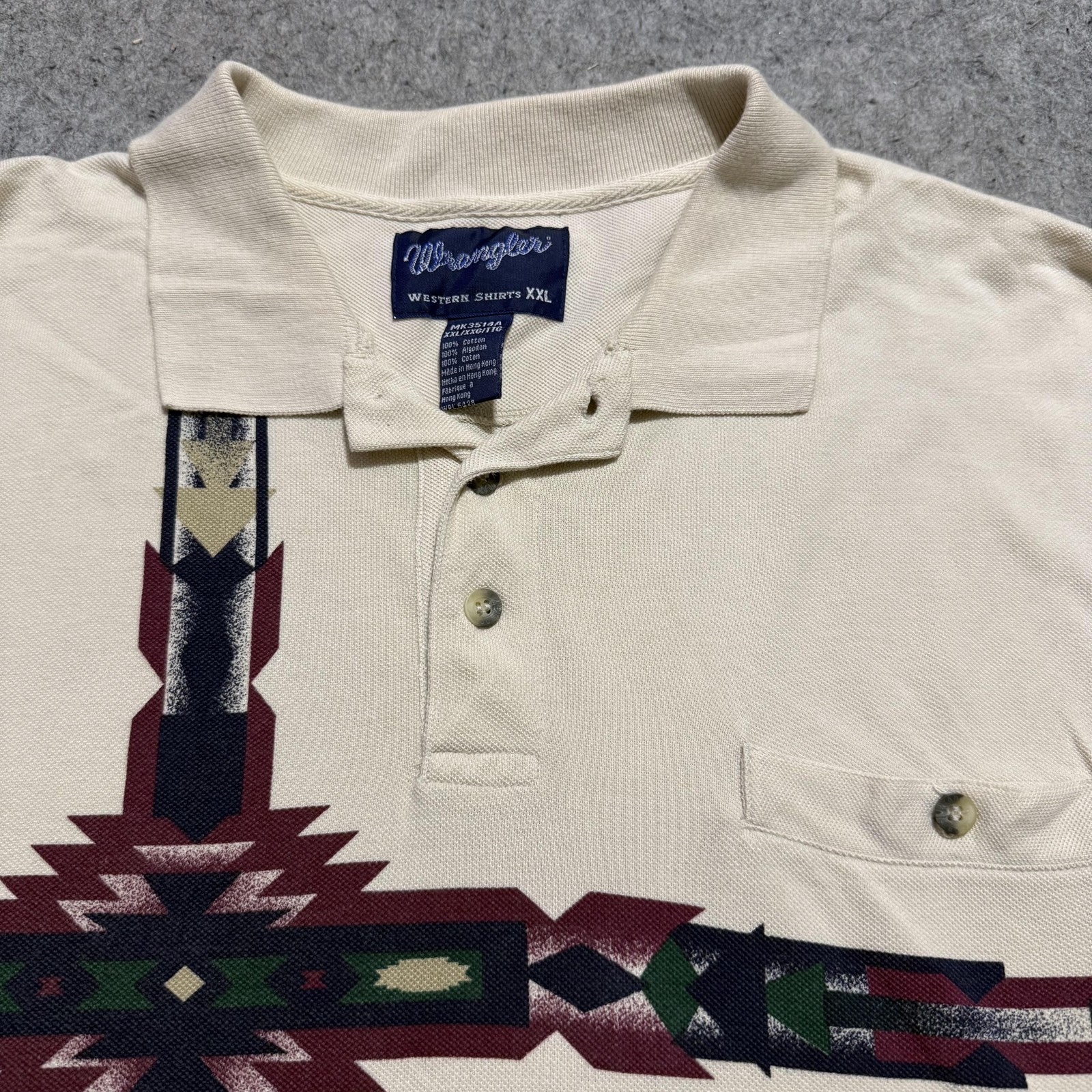 Vintage Wrangler Polo Shirt Mens 2XL White Western Southwestern Aztec Cross 90s
