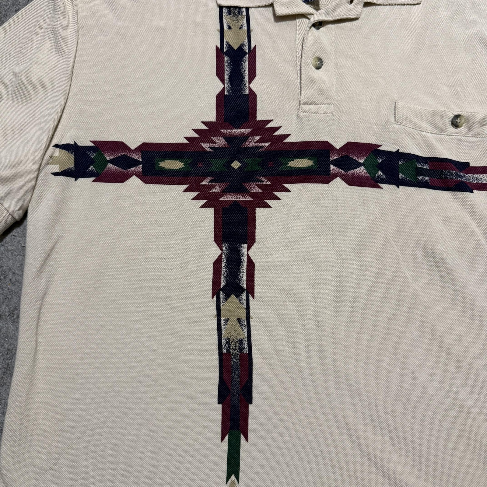 как выглядит Vintage Wrangler Polo Shirt Mens 2XL White Western Southwestern Aztec Cross 90s фото