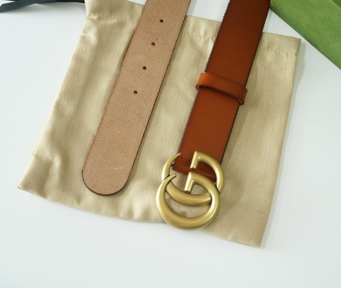 Unisex Gucci Leather Belt in Brown with Gold-Tone Double G Buckle