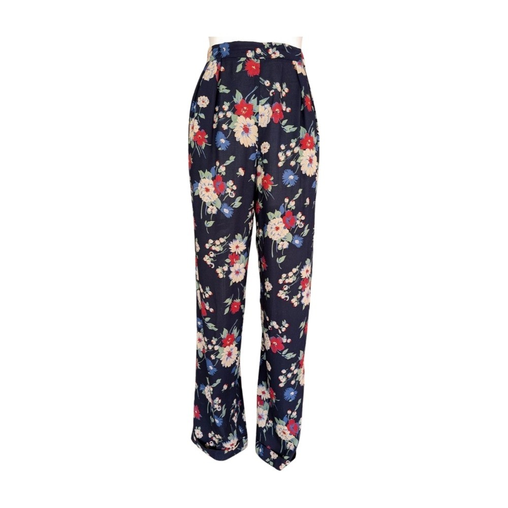 как выглядит Vintage 90s Ralph Lauren Blue Label Flowy Floral Cuffed Trouser Pants Size 8 фото
