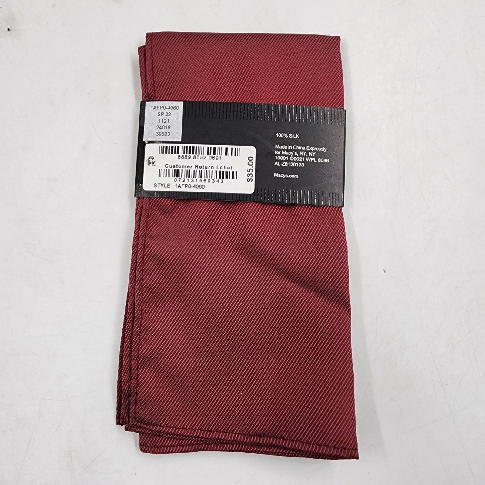 как выглядит Alfani Solid Silk Pocket Square Mens One Size Burgundy фото