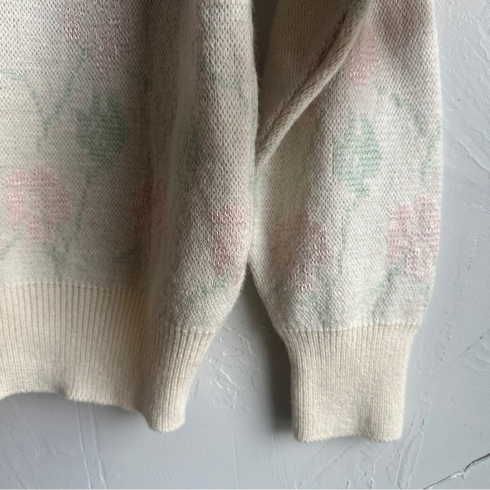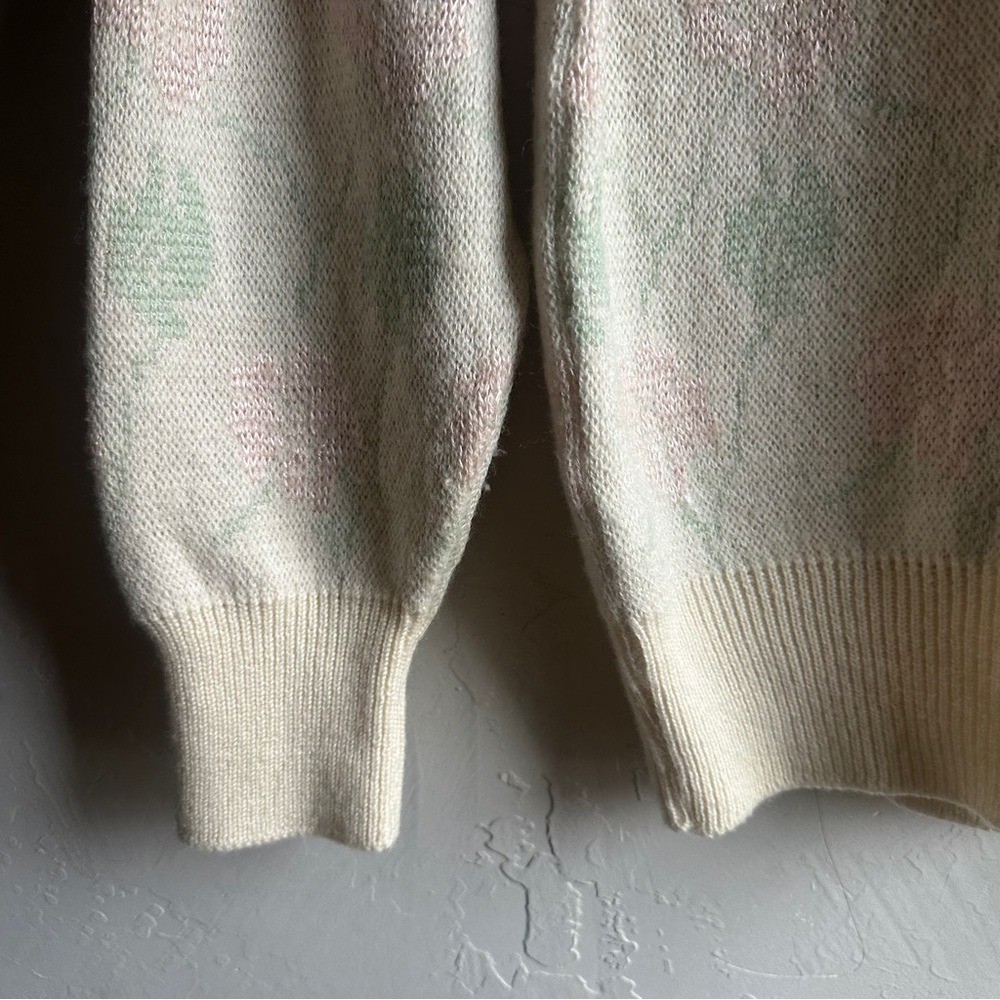 как выглядит Vintage Floral Knit Sweater Cottagecore Grandmacore Cozy Winter Pullover Sz S фото