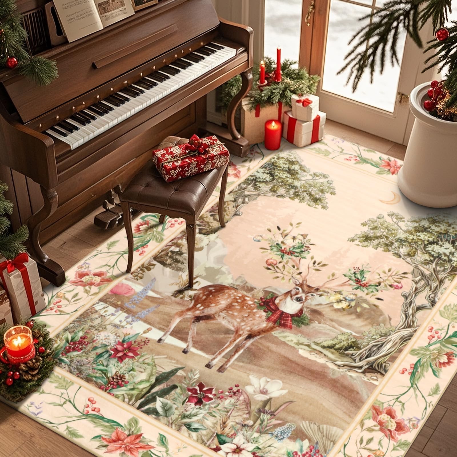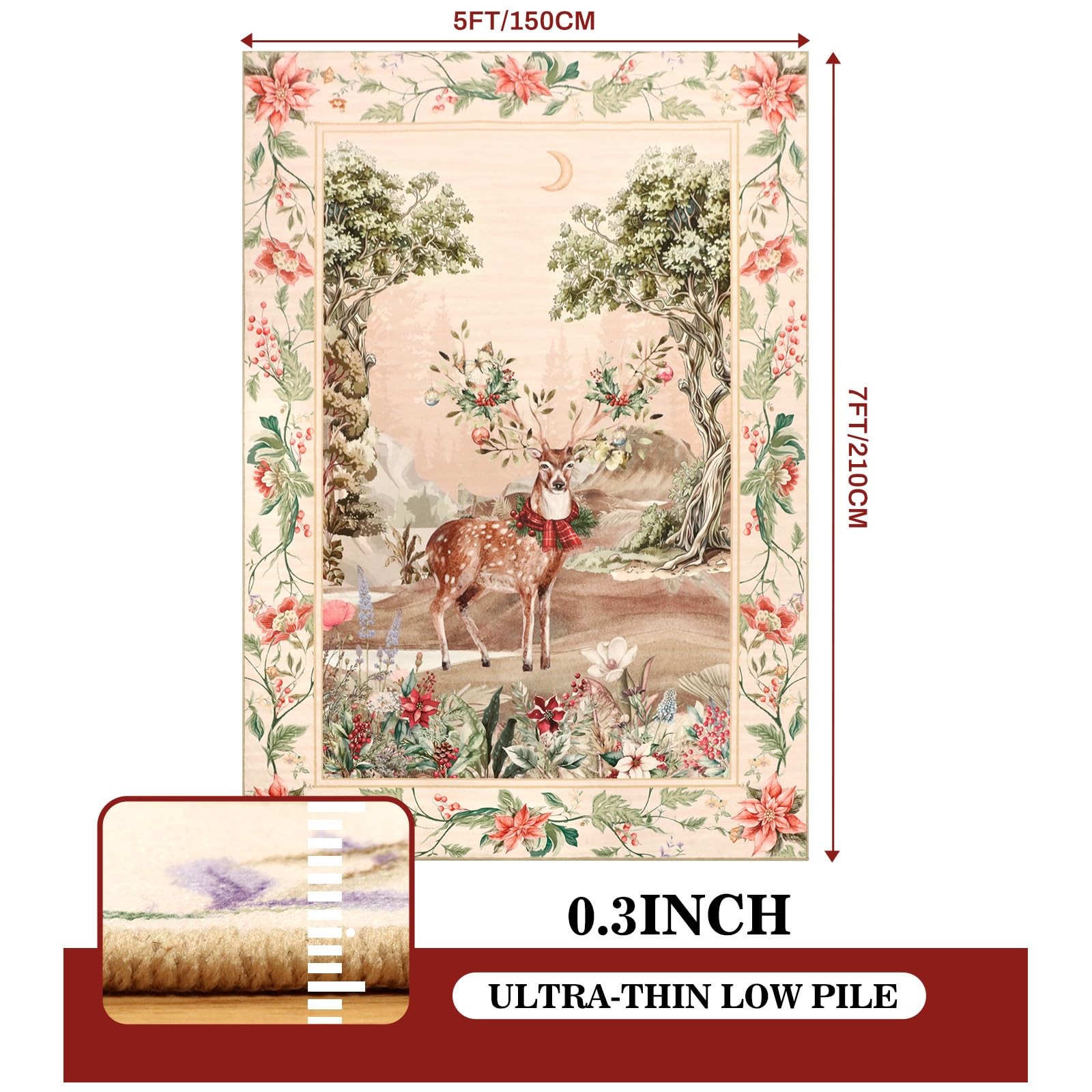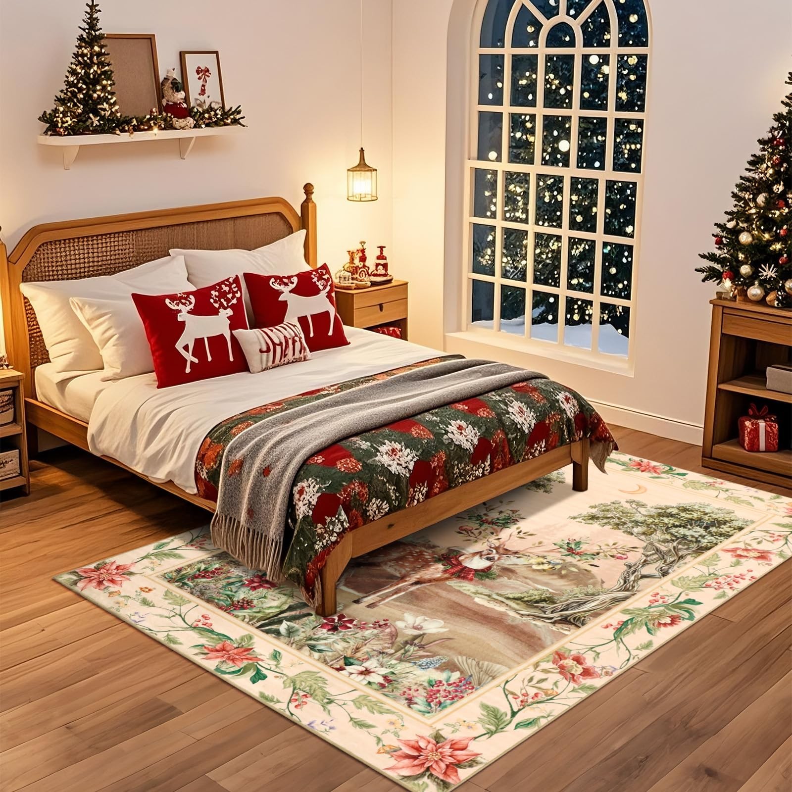 Christmas Living Room Rug 5x7 Machine Washable, Xmas Reindeer Area Rug for Be...