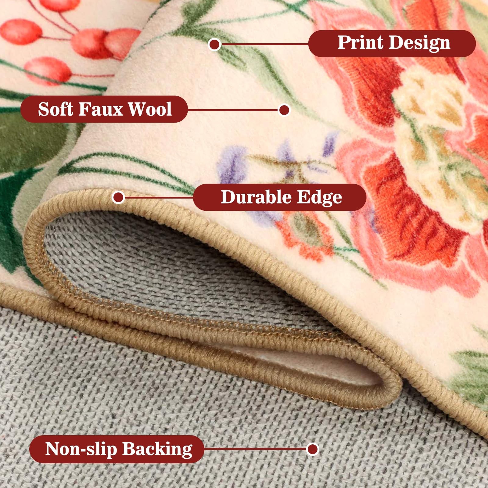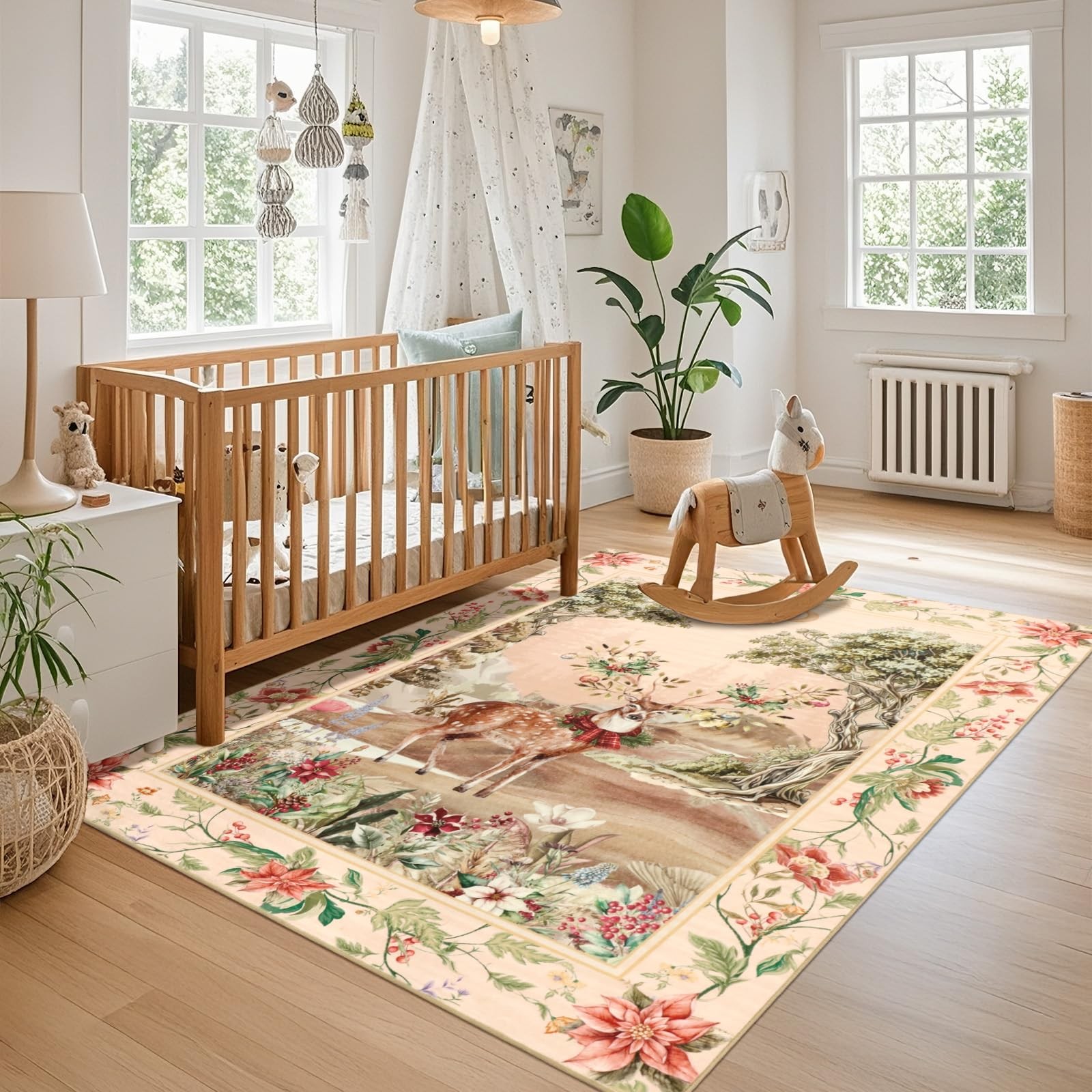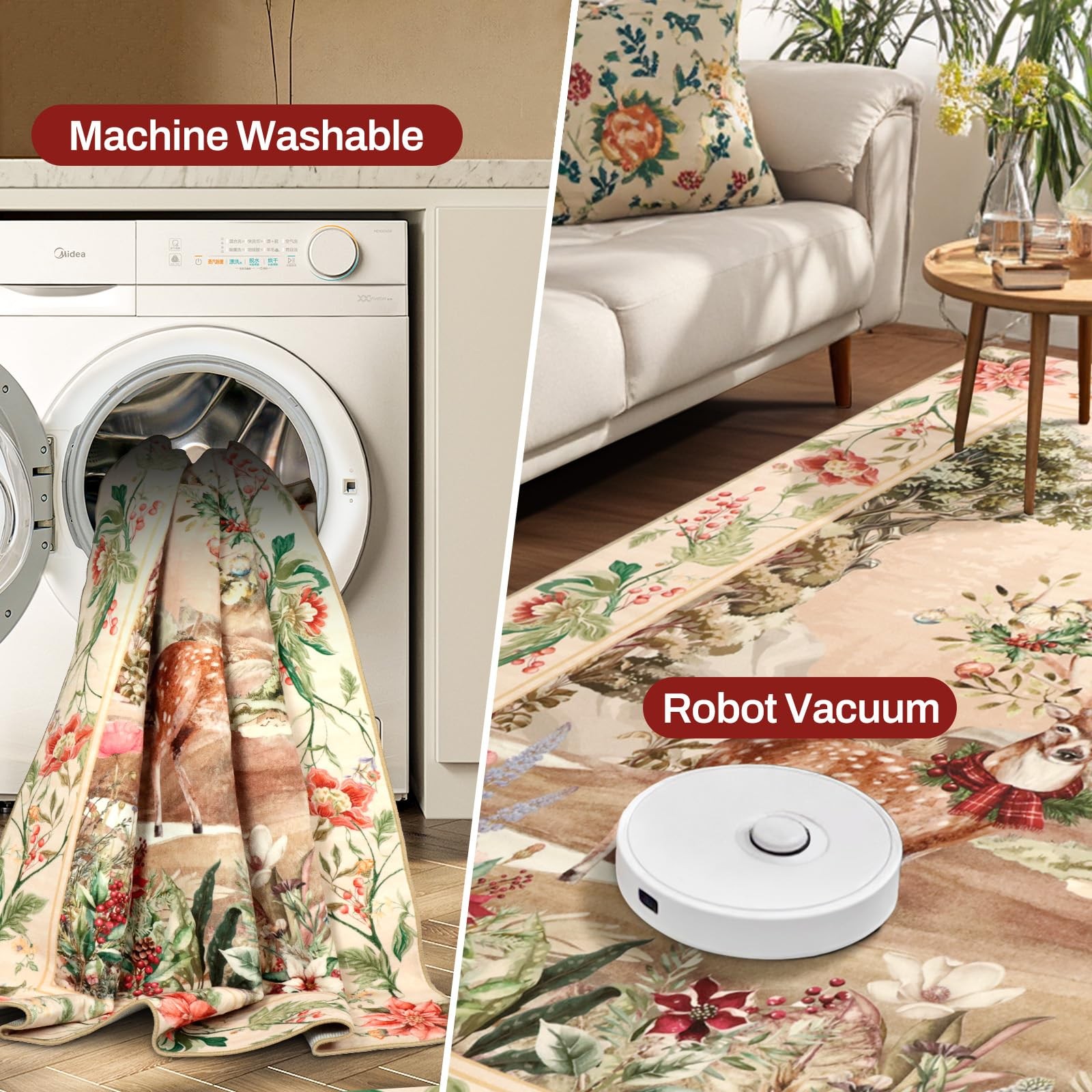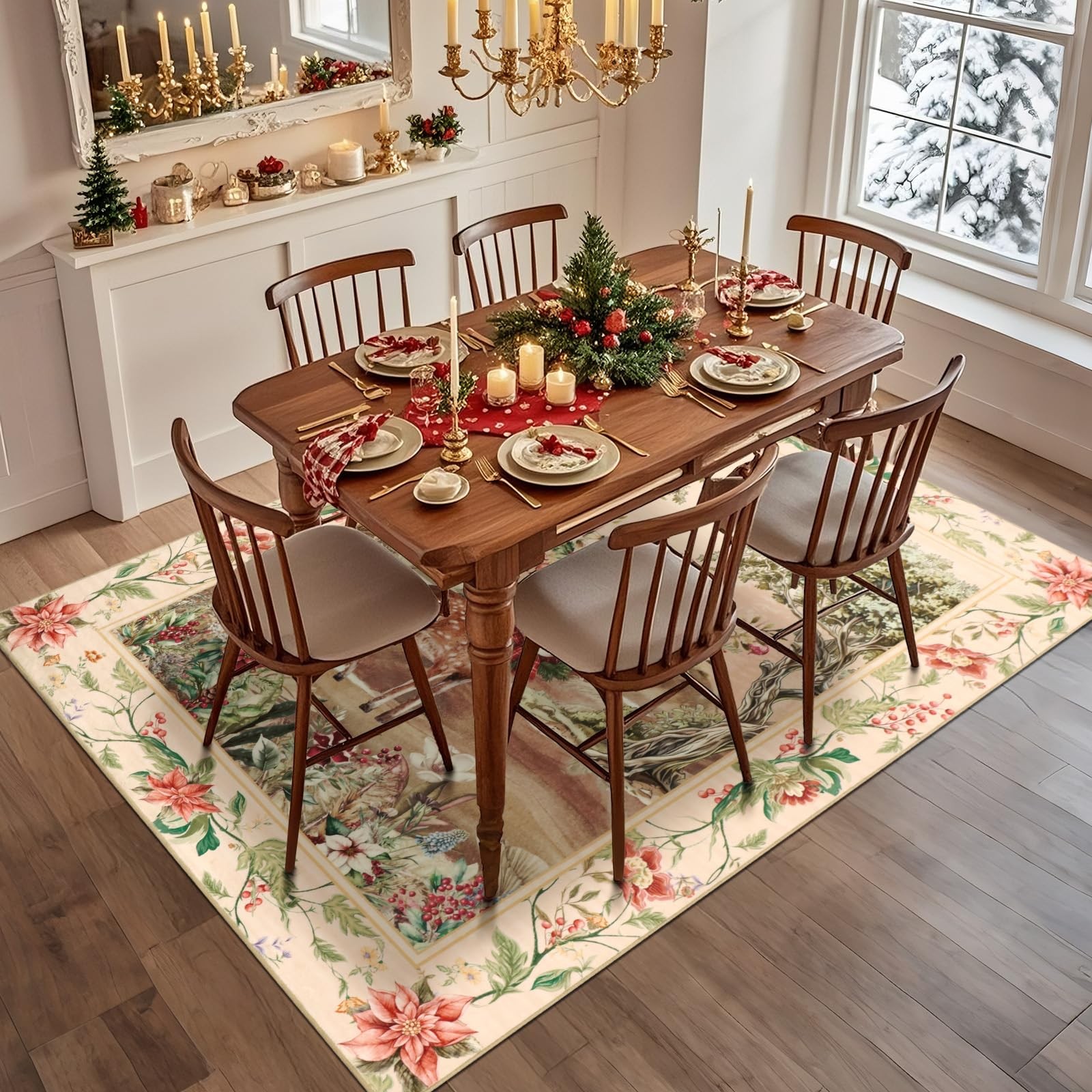 Christmas Living Room Rug 5x7 Machine Washable, Xmas Reindeer Area Rug for Be...