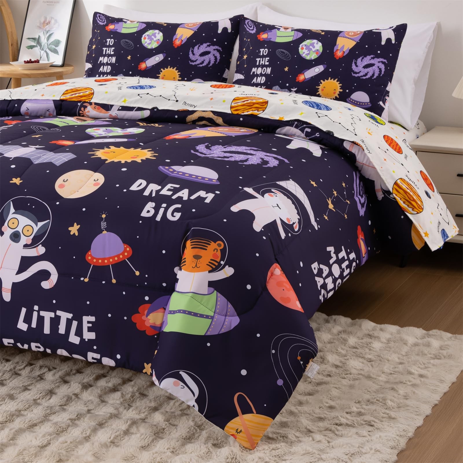 Space Comforter Twin Set Rocket Bedding Set Super Soft Cute Aliens UFO Prin...