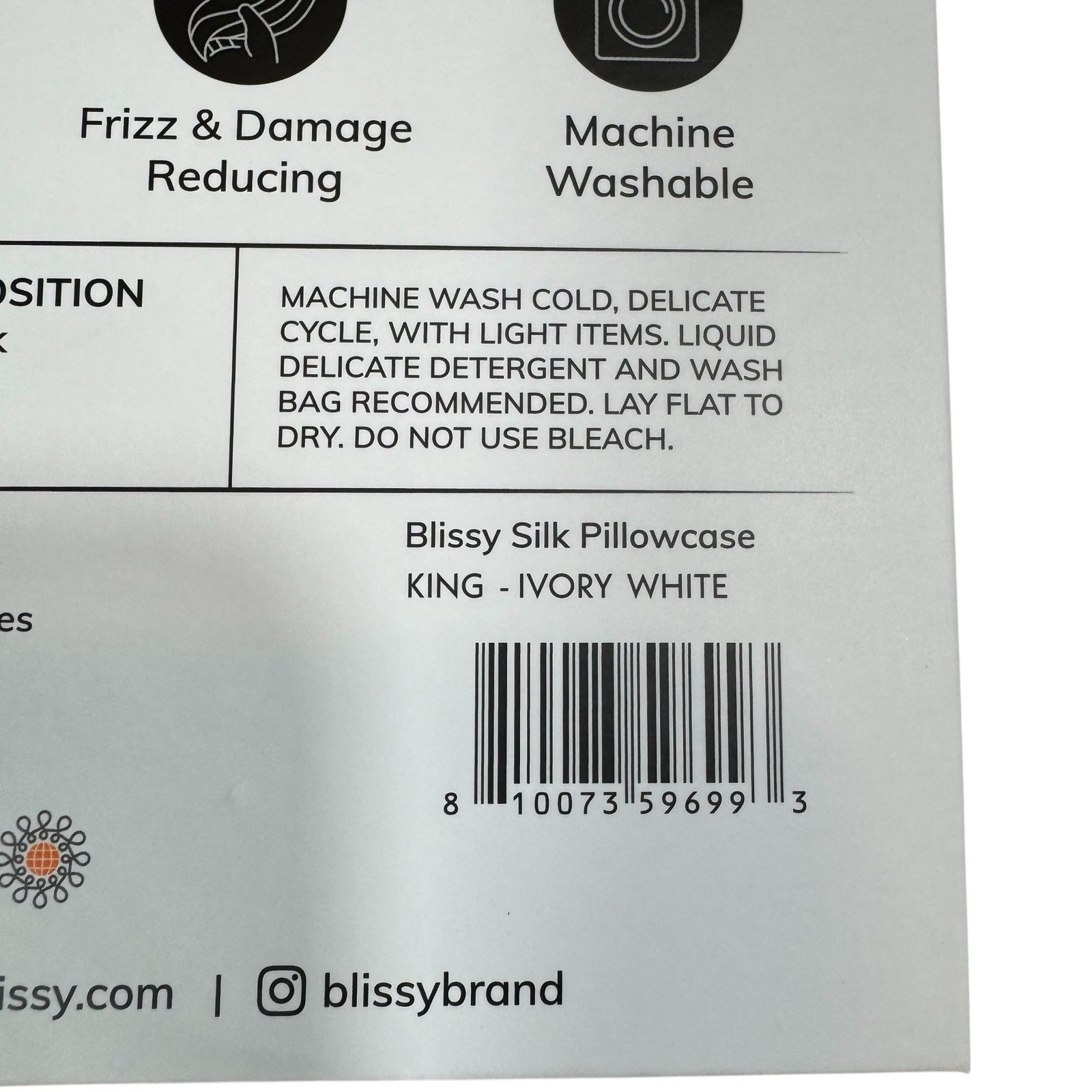 Blissy 100 Mulberry Silk Pillowcase King 20 x 36 Ivory White New