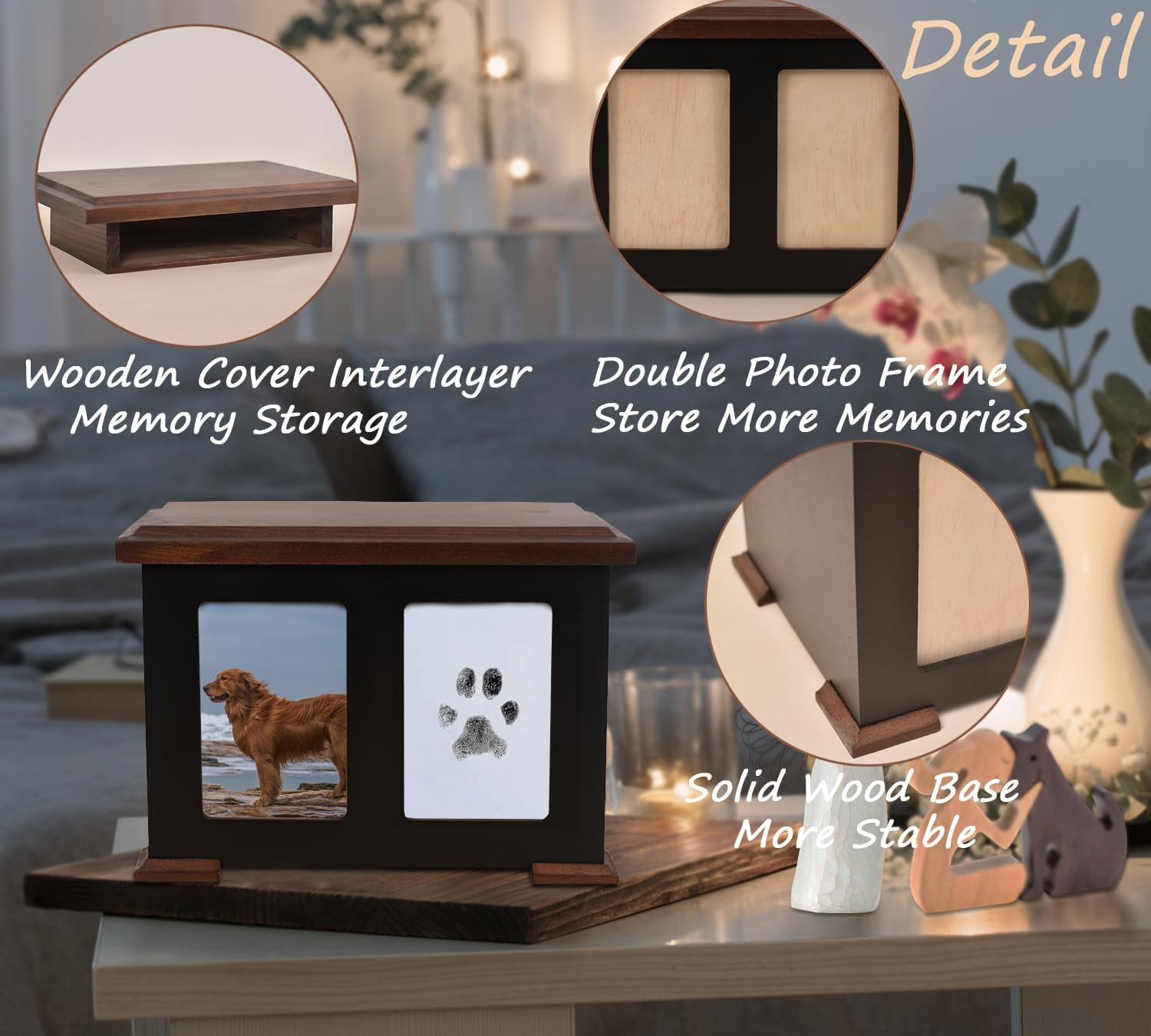 Dog Urn for Ashes,Pet Urns up to 150 Lbs, Wooden Keepsake Memorial Box with Paw