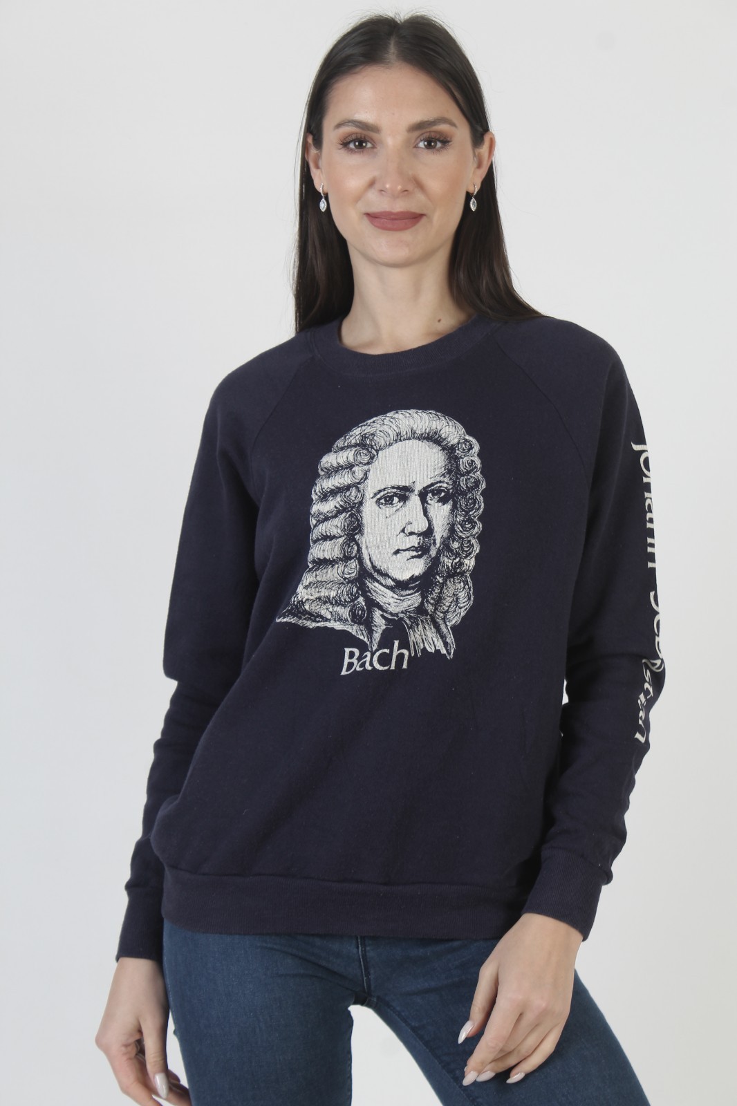 Vintage J.S. Bach Sweatshirt Jerzees Navy Composer AOP Music 50 50 Crewneck M
