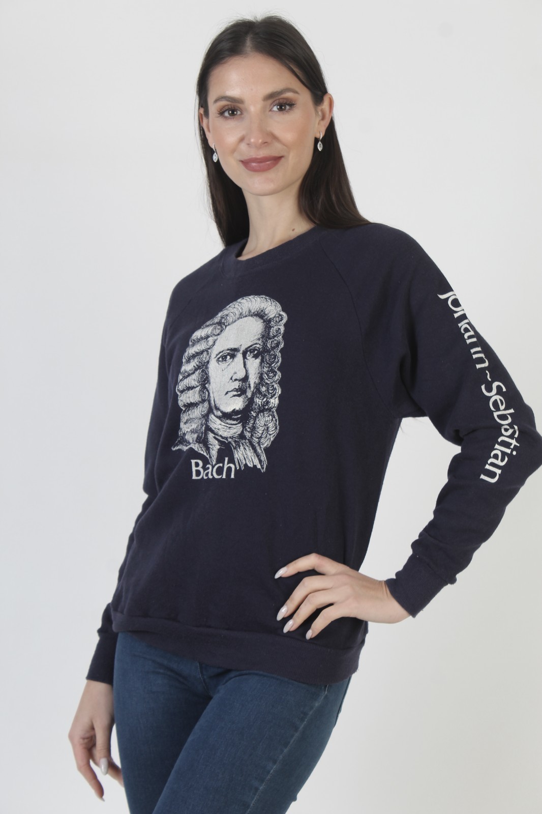 как выглядит Vintage J.S. Bach Sweatshirt Jerzees Navy Composer AOP Music 50 50 Crewneck M фото