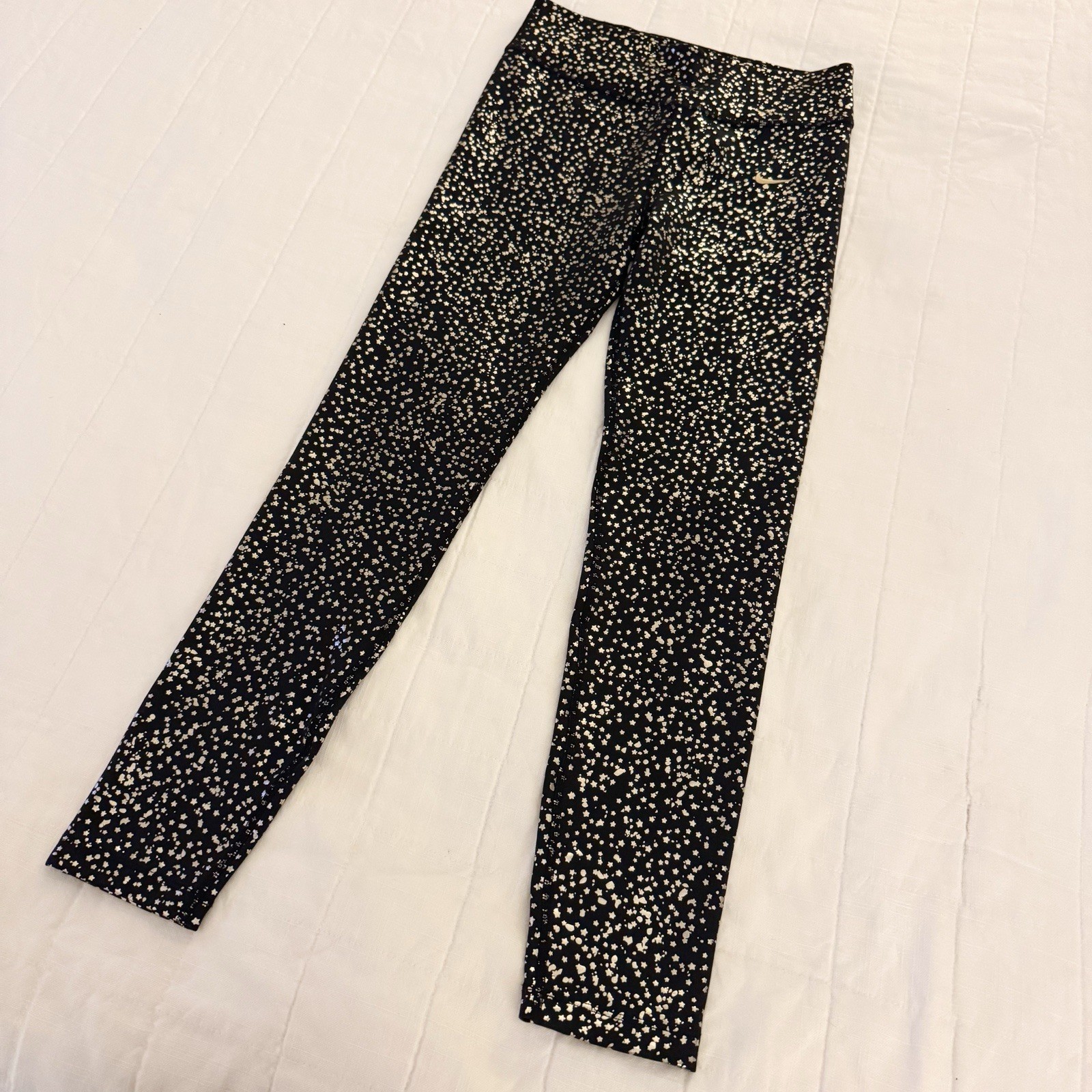 Nike One Dri-Fit Leggings Girls Size LARGE Black Gold Metallic Stars All Over