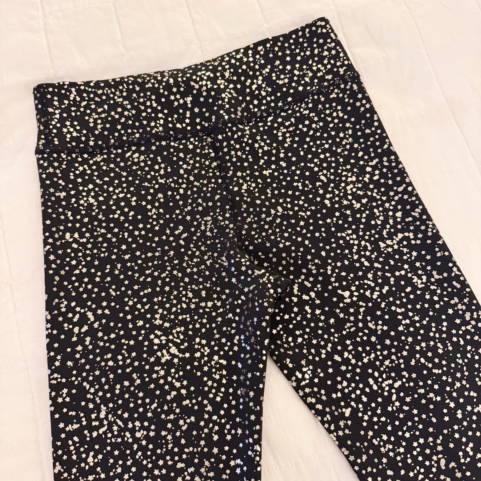 как выглядит Nike One Dri-Fit Leggings Girls Size LARGE Black Gold Metallic Stars All Over фото