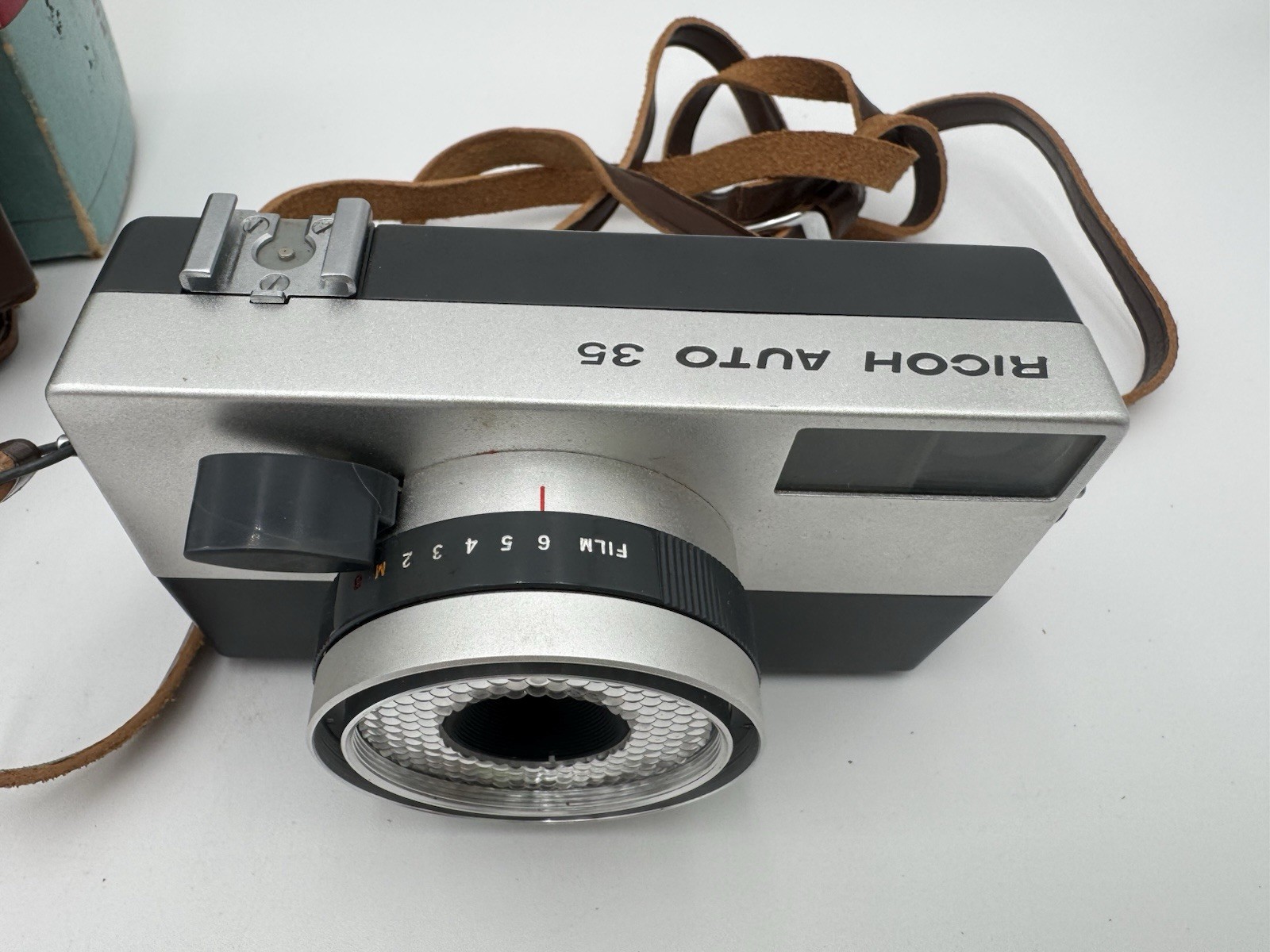 как выглядит Ricoh Auto 35 camera, leather case, Japan, Riken Ricoh F 4cm Lens Original Box фото