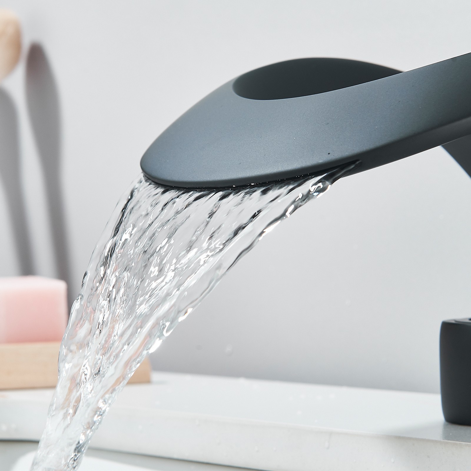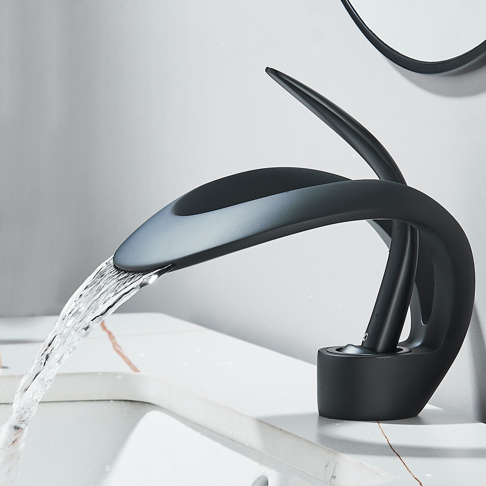 Bathroom Sink Faucet 1 Hole Waterfall Lavatory Vanity Faucet Single Handle Mixer