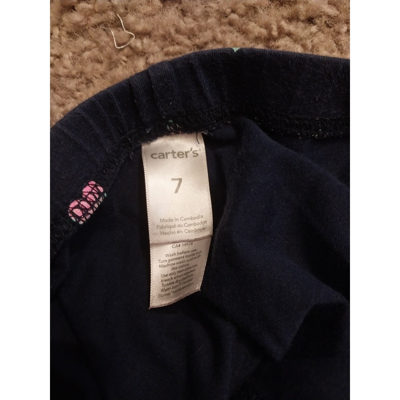 Carter s Girls Black Leggings With Blue And Pink Heart Print Size 7 Soft Stretch