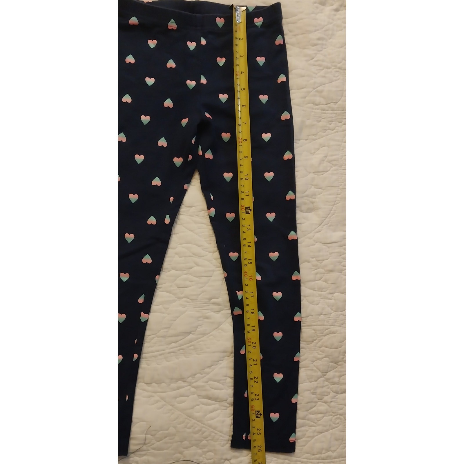 как выглядит Carter s Girls Black Leggings With Blue And Pink Heart Print Size 7 Soft Stretch фото