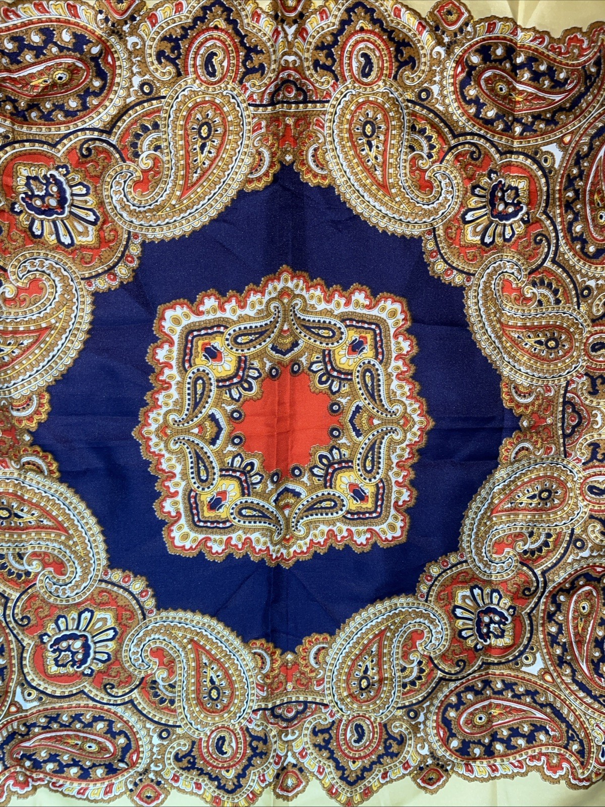 Gold Blue Red Paisley 100 Polyester Made In Italy Scarf 27 X27 Square
