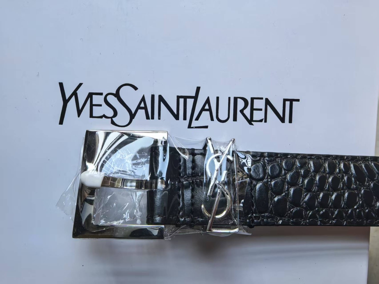 как выглядит Yves Saint Laurent Silver YSL Logo Genuine Black Calfskin Womens Belt 3.0cm фото