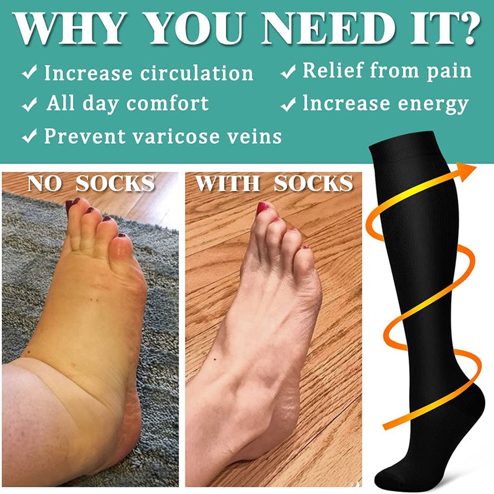 3 Pairs Medical Compression Socks for Women and Men 20-30 mmHg Knee High Socks