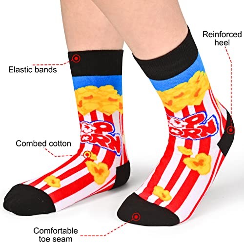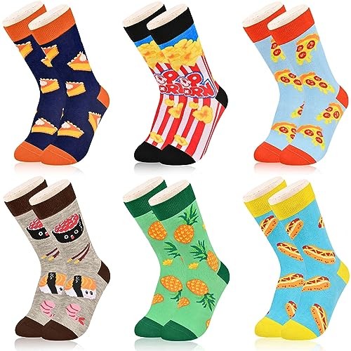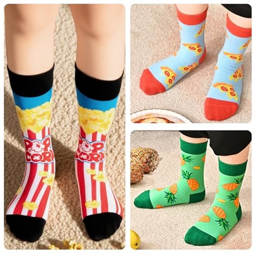 Kids Boys Girls Novelty Crew Socks, Funny Colorful 10-12 Years 6 Pack Diy Food